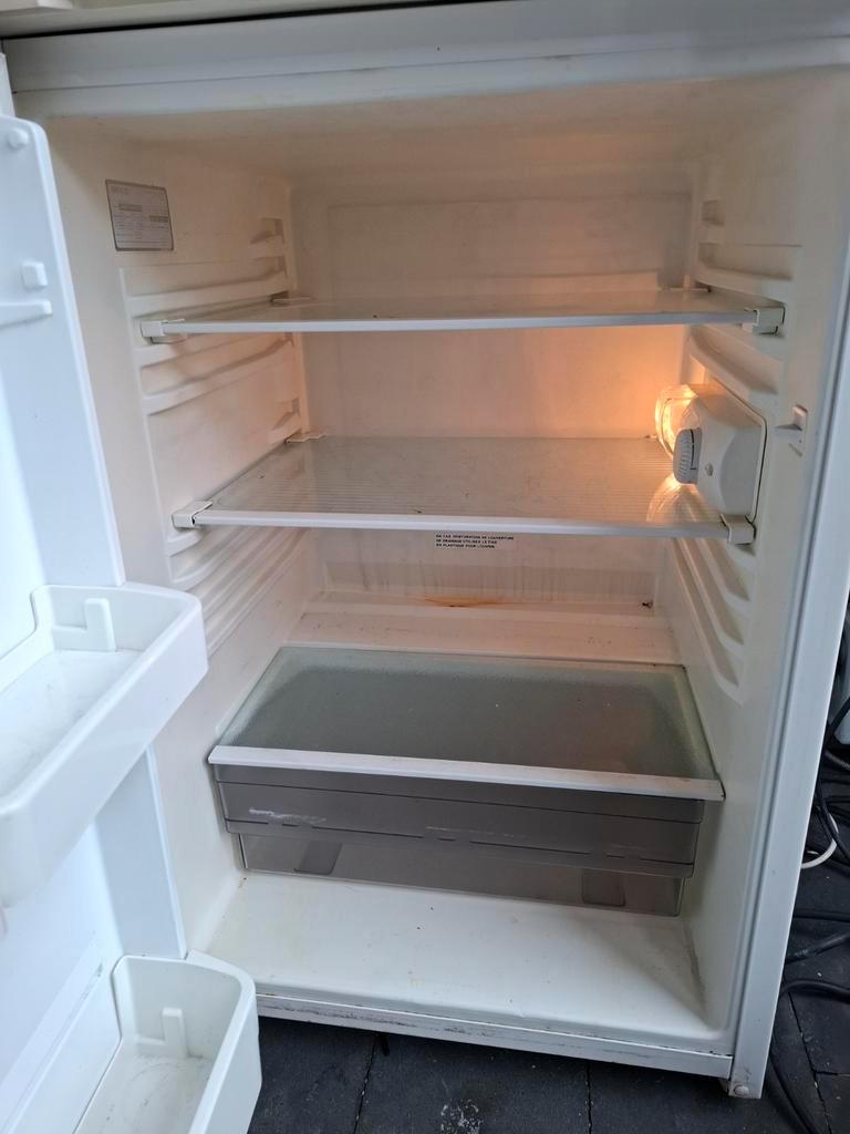 Compacte koelkast, ideaal voor kleine ruimtes of als extra koeling. Gebruikt, maar in goede staat. Perfect voor studentenkamers, kantoren of als extra koelkast in huis. Biedt voldoende ruimte voor al