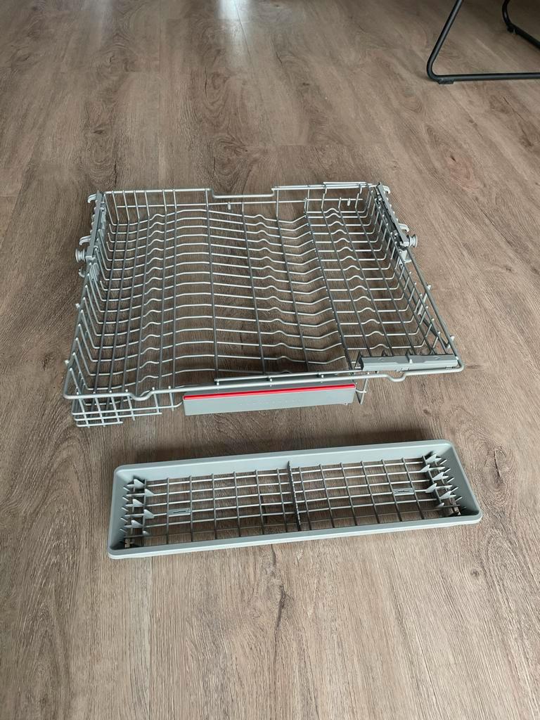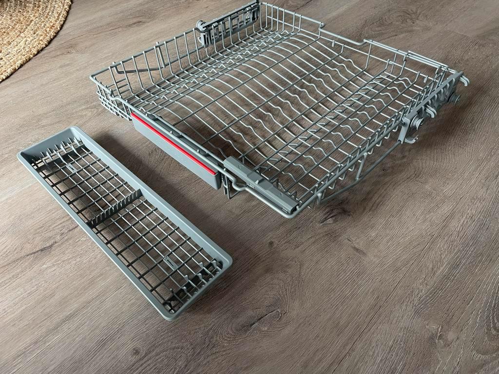 Nieuwe besteklade voor een bosch vaatwasser. Geschikt als vervanging voor een defecte of ontbrekende lade. Controleer de compatibiliteit met uw specifieke vaatwassermodel. Nooit gebruikt, in perfecte