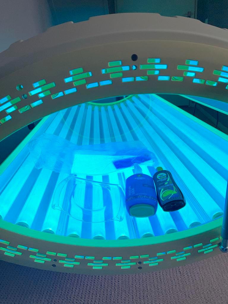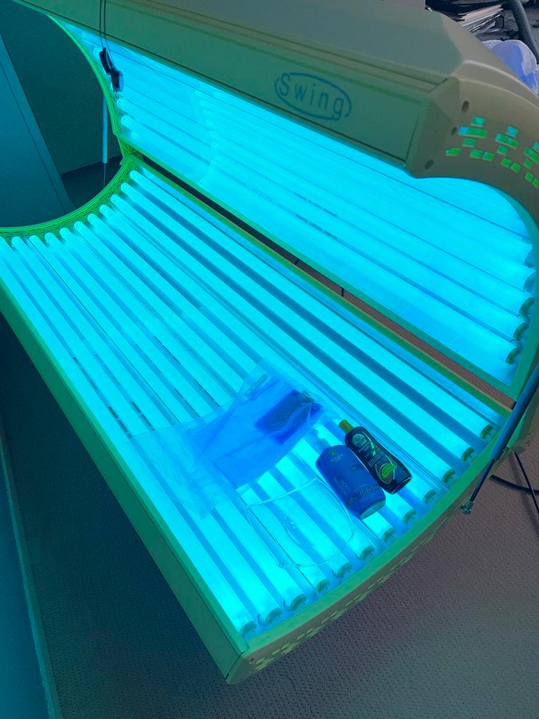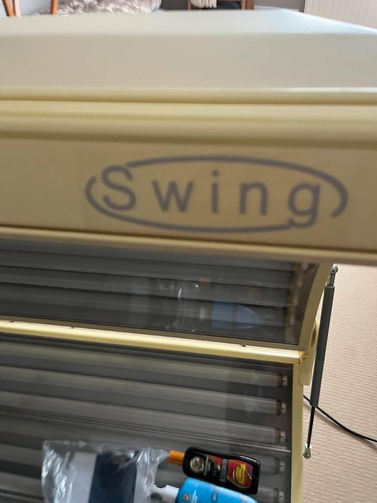 Gebruikte, maar goed functionerende dubbelzijdige zonnebank van het merk swing. Ideaal voor thuisgebruik. Biedt een gelijkmatige bruining. Aantal lampen: zie specificaties. Conditie: gebruikt. Ophalen