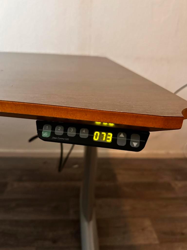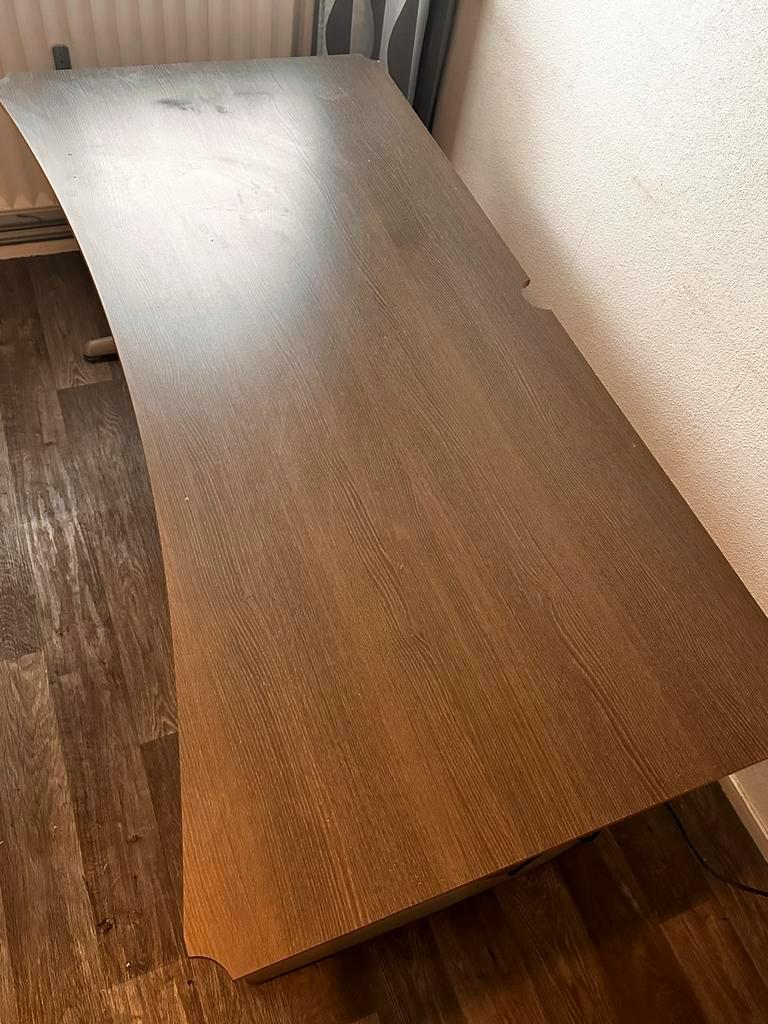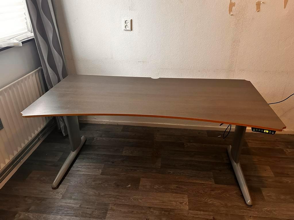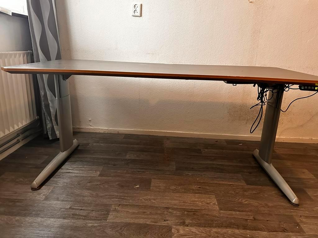Elektrisch in hoogte verstelbaar bureau. Ideaal voor thuiswerken of op kantoor. Het bureau is in goede staat maar staat wel al een tijdje. Het bureau is makkelijk te bedienen met de knoppen aan de zij