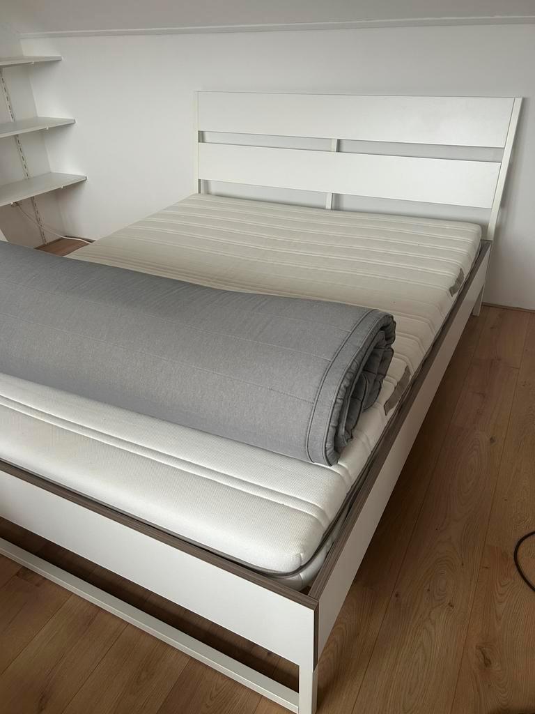 Een netjes, nauwelijks gebruikt tweepersoonsbed. Afmeting 1.60X2 meter. Met matras en topper.