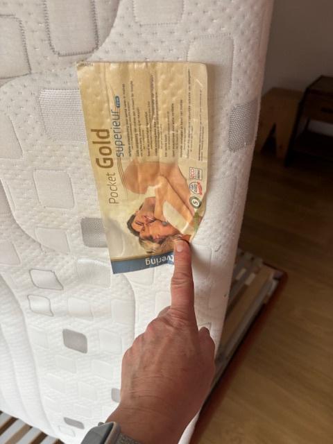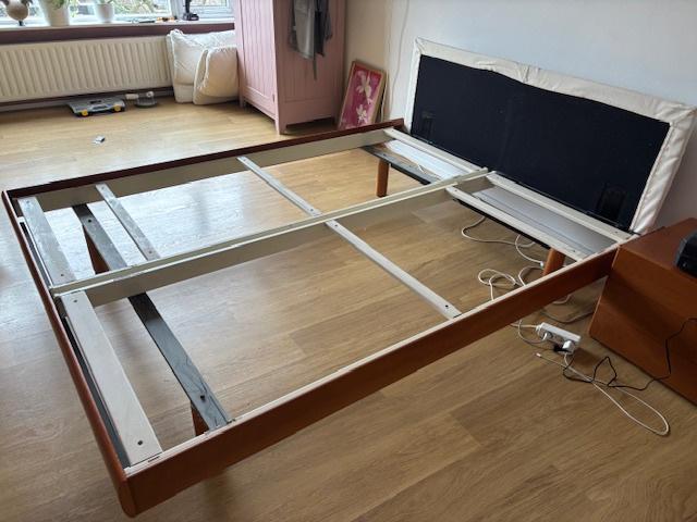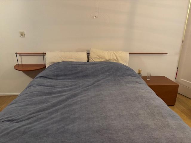 Kersenhouten bed met ruim ladeblok en bijpassend plankje. Italiaans design. T matras 160 x 200 pocket gold superieur firm van beter bed twee ikea bedbodems, instelbaar topper latex platinum topmatras