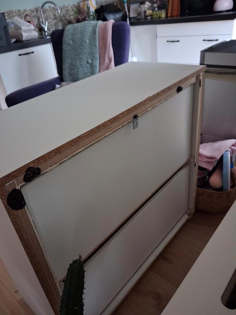 Wie kan ik blij maken met deze ladenkast? De kast heeft geen achterkant. Zat aan de muur bevestigd. 92Cm breed x 38cm diep x 84cm hoog. De laden zijn 75 cm breed x 29cm diep 35cm hoog.