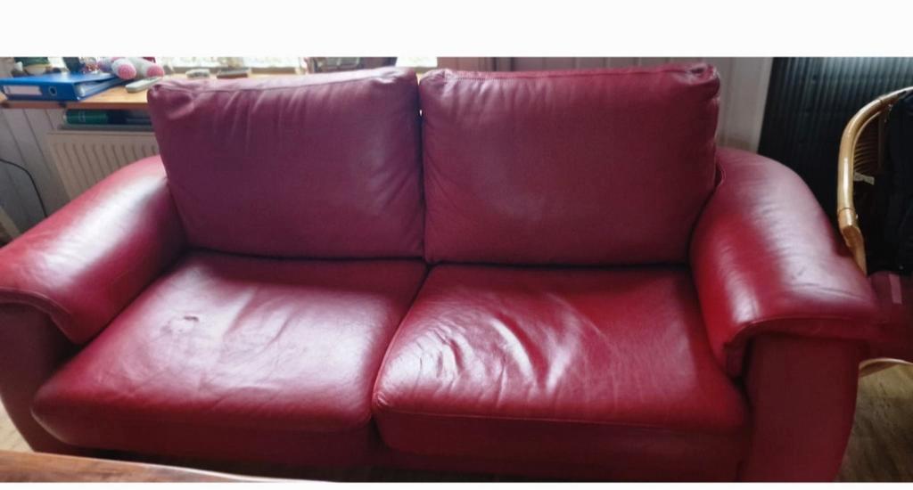 Rode 2,5zits bankstel, gebruikt maar kan nog een ronde mee. Graag zelf ophalen