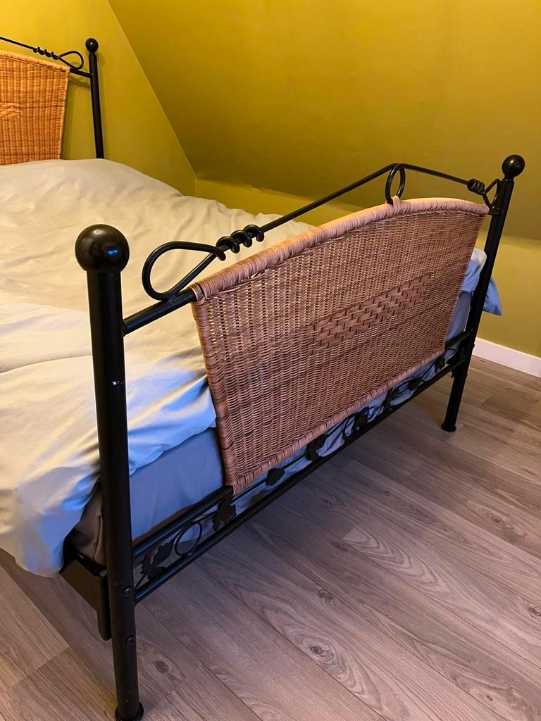 Tweepersoonsbed 160 x 200 cm. Gebruikt en een aantal keer uit elkaar gehaald waardoor slijtage. Knoppen zitten niet goed vast maar zijn wel compleet en zijn zichtbaar beschadigd. Ondersteun kantelt, o