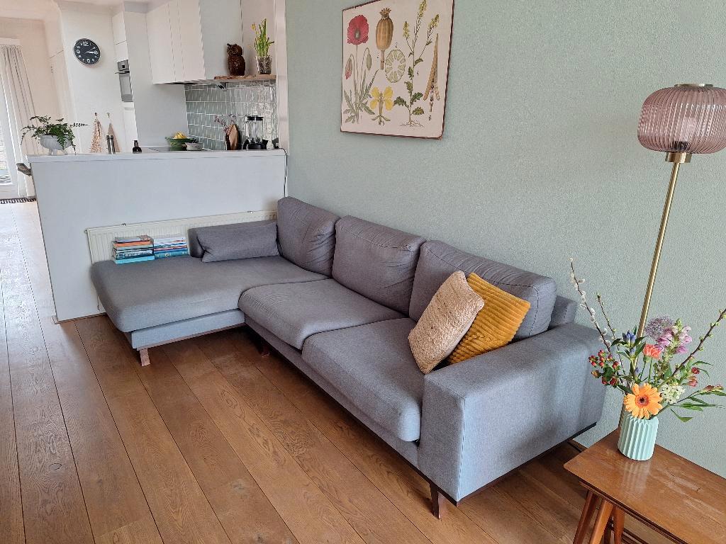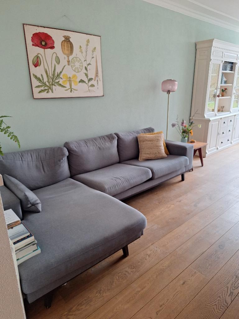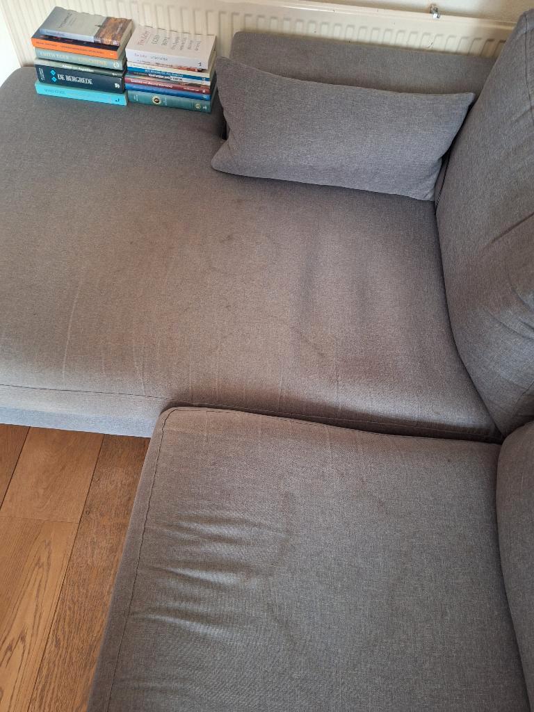 Gratis op te halen ivm een nieuwe bank. Grijze hoekbank. Heeft wat vlekken, kan een schoonmaakbeurt gebruiken maar verder nog prima voor een 2e ronde!