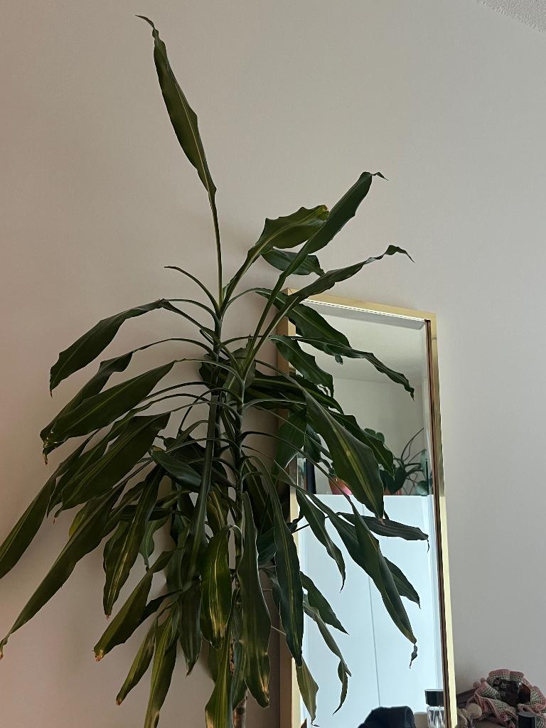 We hebben helaas te veel planten en deze is te groot geworden. We hopen er iemand anders blij mee te maken! Hij is rond de 1m - 1.10M incl. Pot