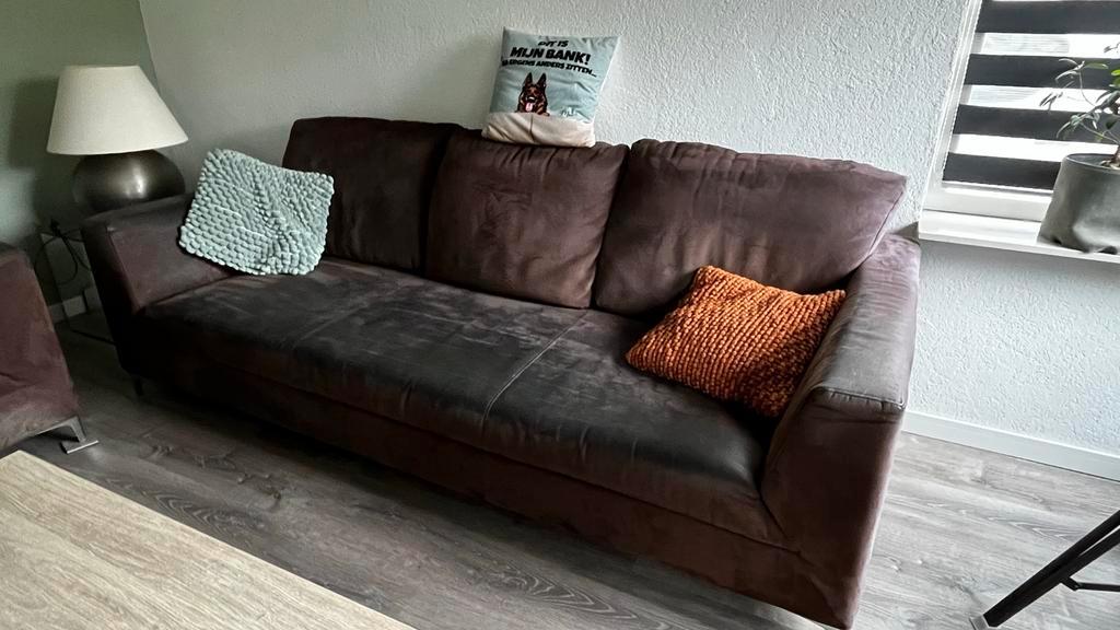 Wegens aanschaf nieuwe bank, gebruikt, niet doorgezakt. Afmtingen 160x90 en 220x90 (leuning 60cm hoog )