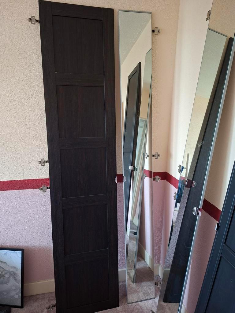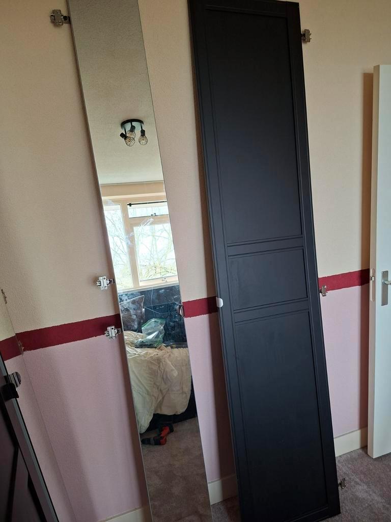 Deuren voor de pax-kasten van ikea. 2 Spiegeldeuren en 2 normale deuren (kleuren zijn verschillend) 1 scharnier mist, niet alle schroeven zijn aanwezig. Gratis af te halen voor 26 februari. Daarna gaa