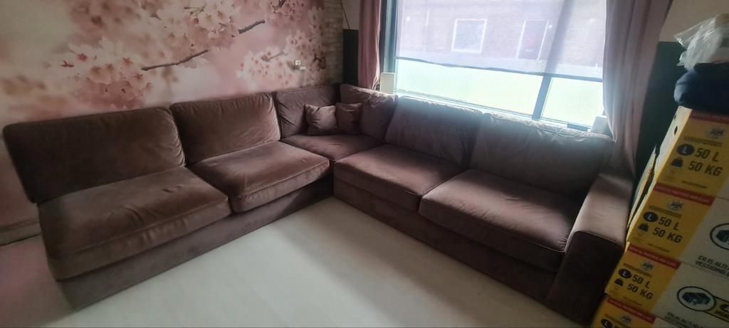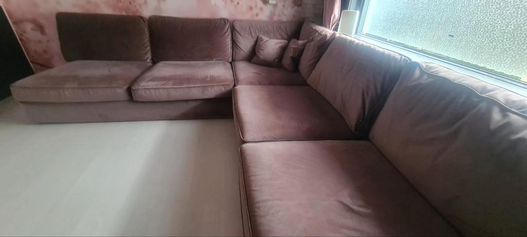 Comfortabele hoekbank in gebruikte staat. Perfect voor een gezellige woonkamer. Biedt voldoende ruimte voor meerdere personen. De bank is bekleed met een zachte stof en is makkelijk te onderhouden. Ho