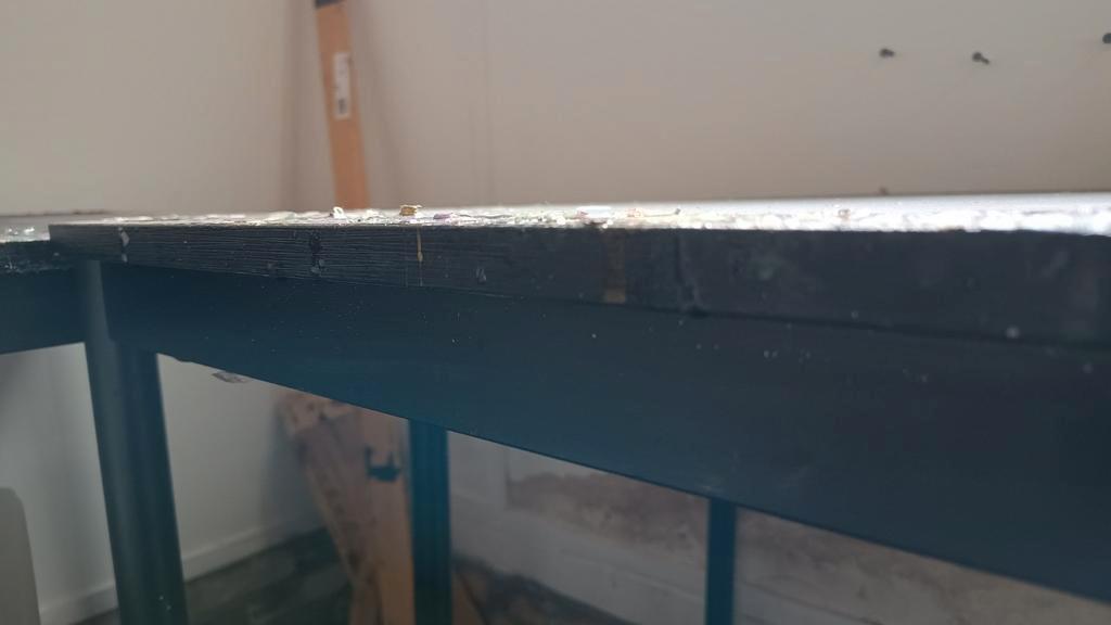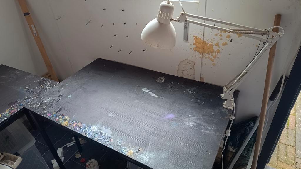 De conditie is gebruikt! Ik gebruikte deze tafels om epoxy sieraden te maken.bij de tafel hoort ook en lamp en klein stoel.