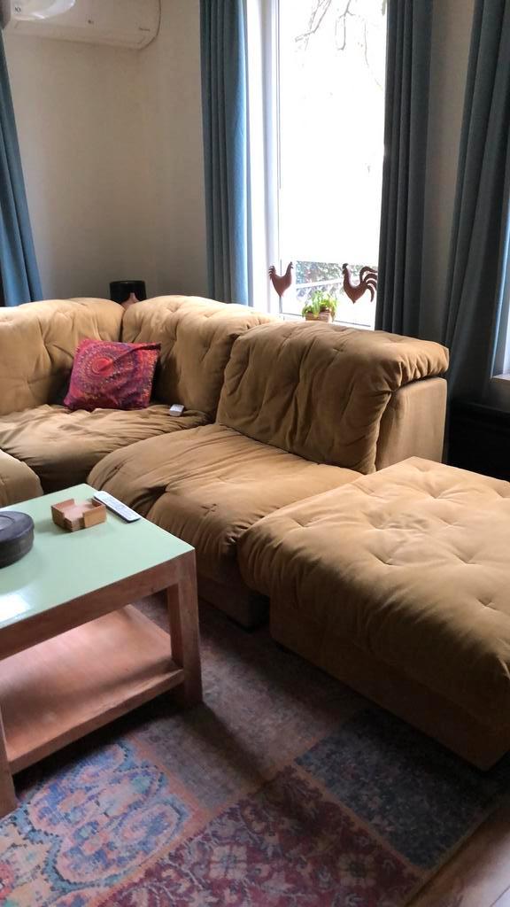 300 x 300 cm. Zitvlak 60 cm. Diep. Hoekbank in goede staat mag komen kijken. Gratis afhalen voor 27februari .hij gaat weg omdat we gaan verhuizen