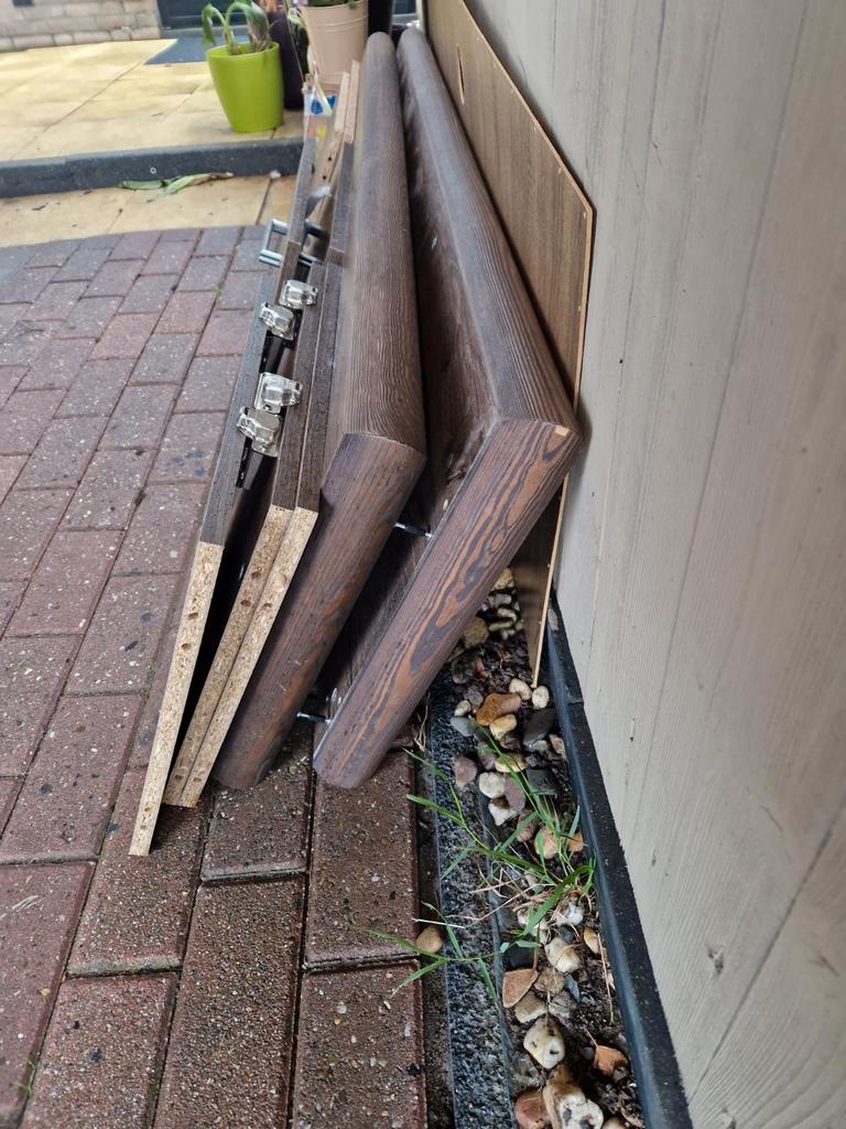 Nog goed uit ziende tv meubel donkerbruin met echte nerf er op. Is wel stoffig heeft een tijd in schuur gestaan maar we hebben en andere gekocht omdat deze stijl niet meer pas in onze inrichting hij i