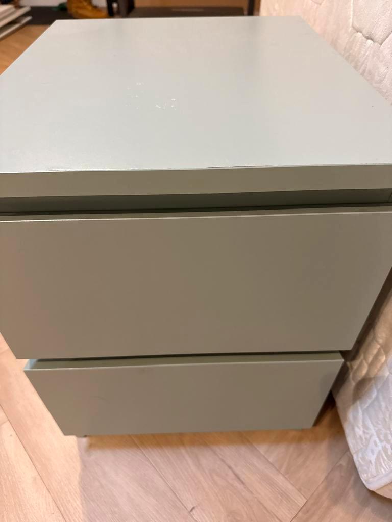 Nachtkastjes met twee lades. Het kastje is in gebruikte staat, maar nog steeds functioneel. Gebruikssporen zie foto’s