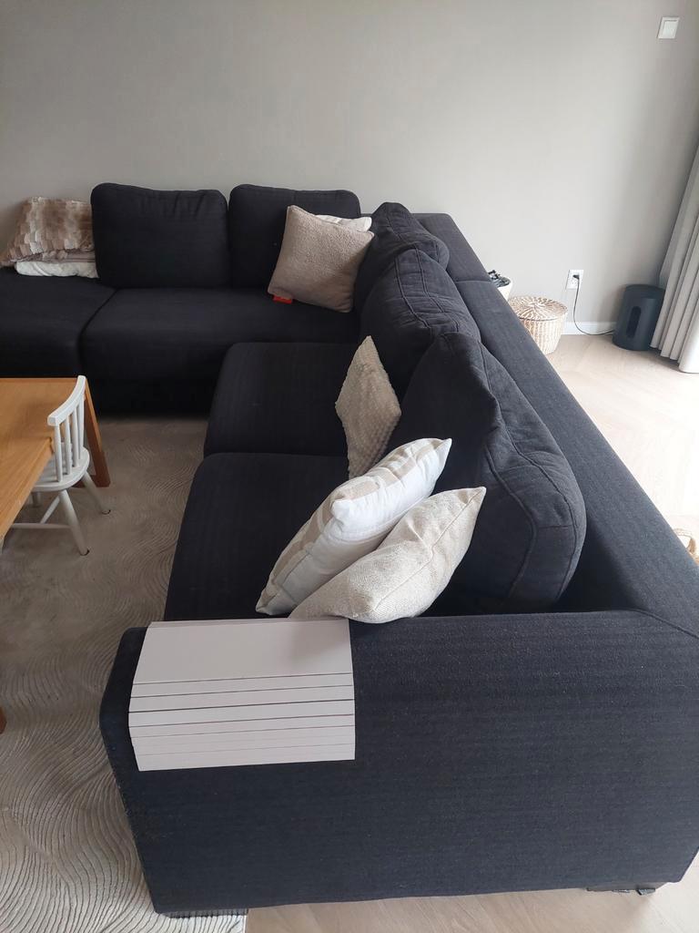 Hoekbank, zwarte stof, gebruikt maar is nog oke. Gratis af te halen voor vrijdag 27 februari. De bank is in 2 delen te vervoeren.