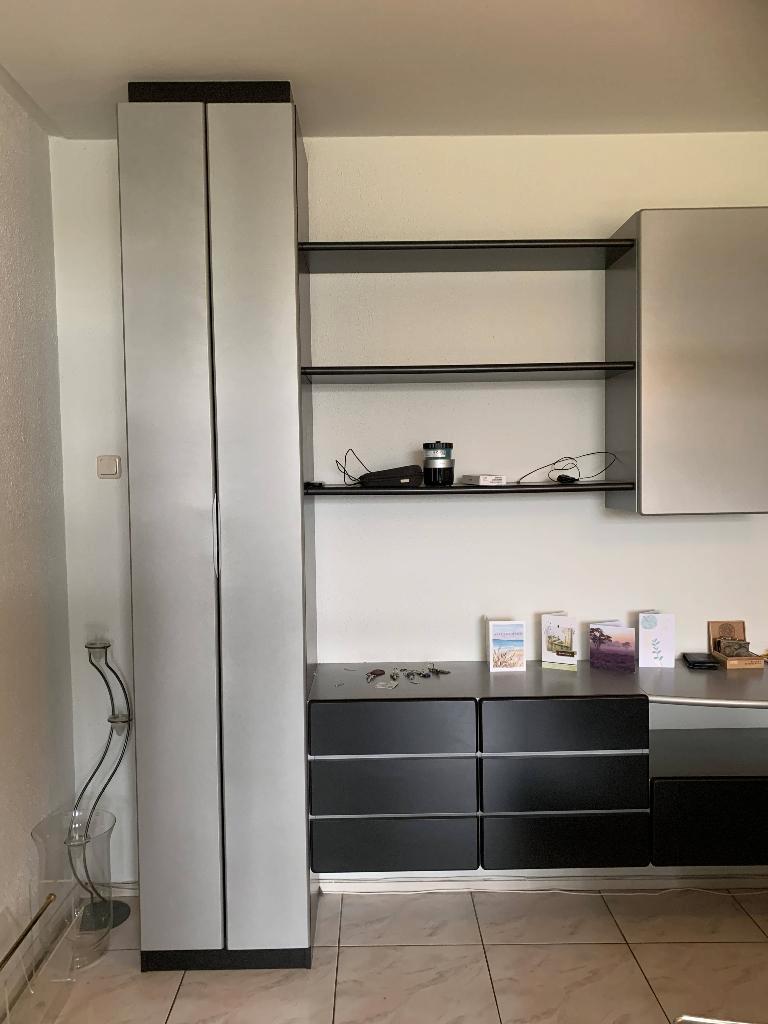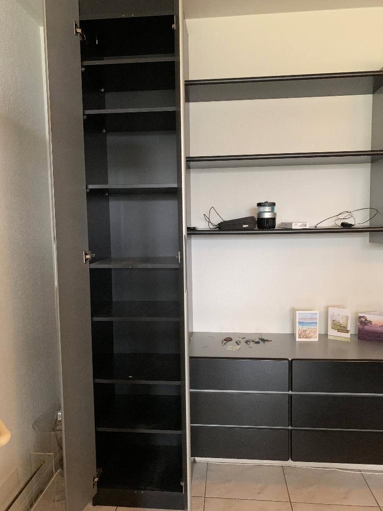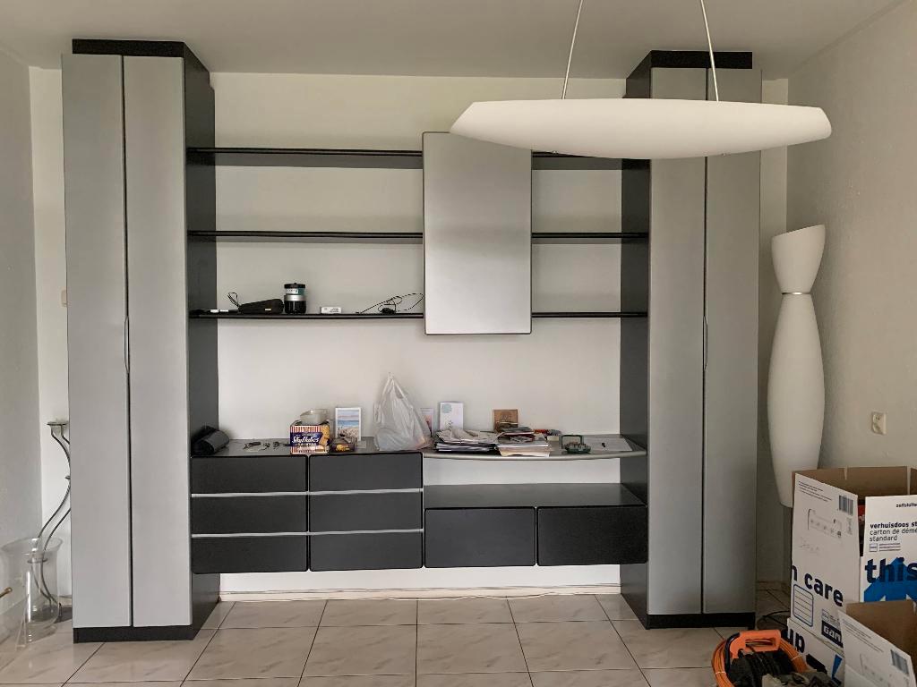 Zwart met zilverkleurig wandmeubel, zelf uit elkaar halen in amstelveen - gratis meenemen! Afmetingen gehele meubel: breedte: 300 cm hoogte: 250 cm diepte: 45 cm afmetingen binnenkant hoge kasten link
