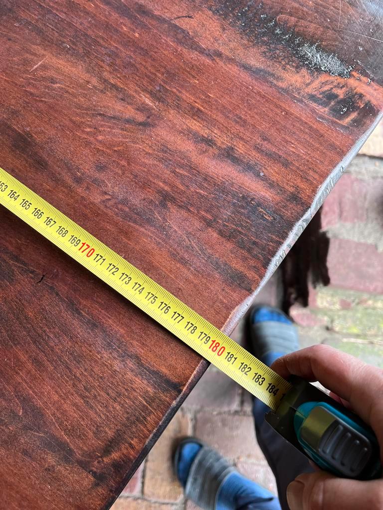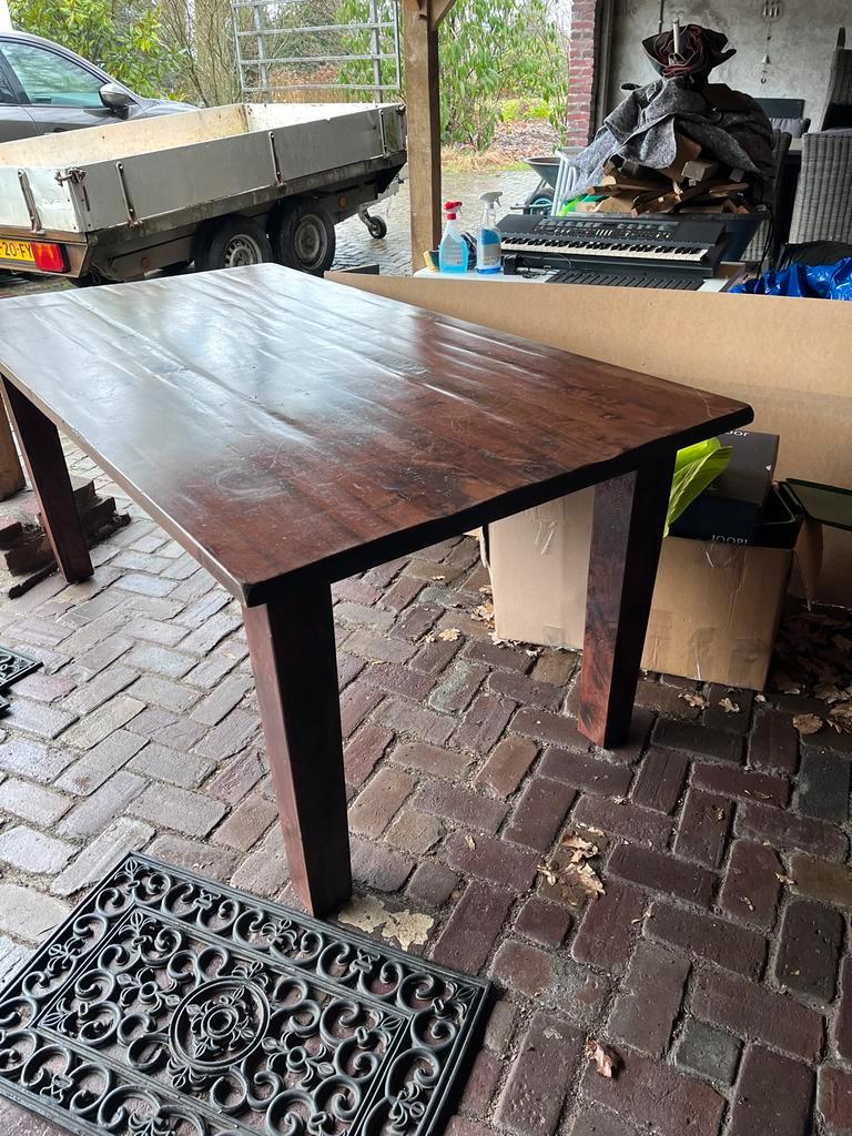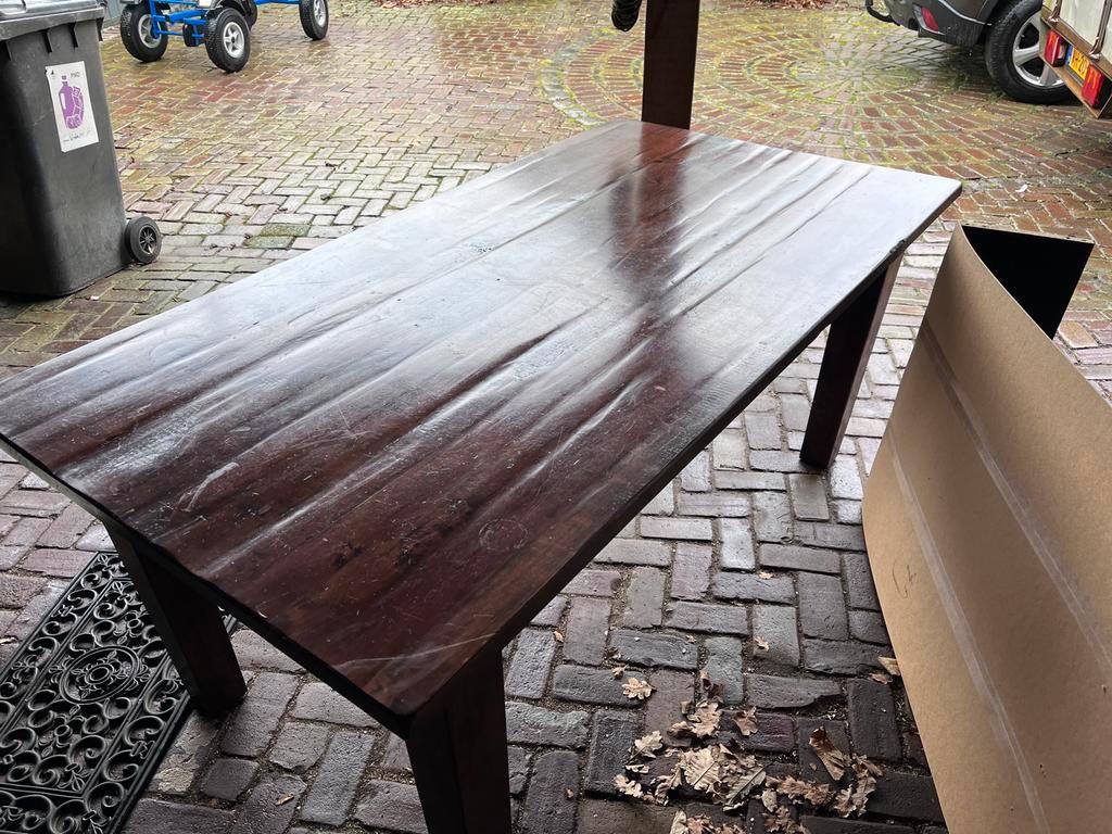 Tafel in prima staat, kan zeker nog een ronde mee! Is overbodig vanwege een verhuizing en mag daarom gratis weg. Wie kan ik er blij mee maken? Afmetingen zijn ongeveer 180cm lang, 95 cm breed en 79 cm