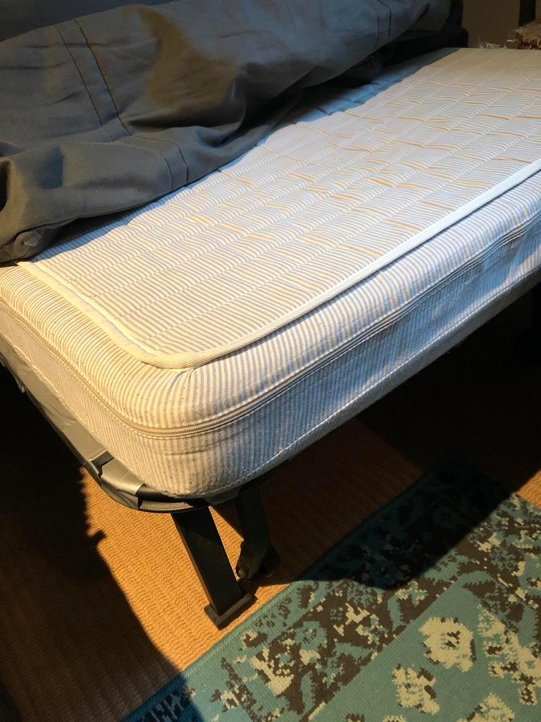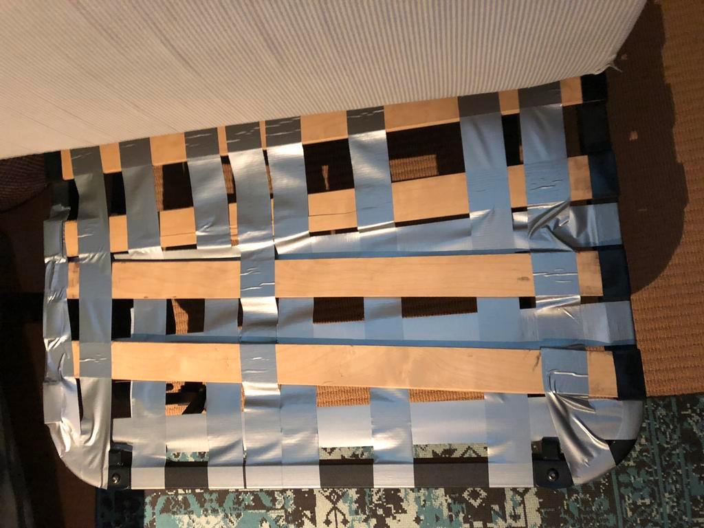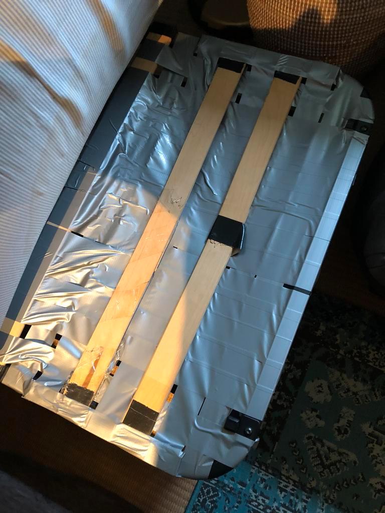 Twee stuks beschikbaar stevig (en vrij zwaar) frame hoes is blauw enkele latten zit gedeelte gebroken.