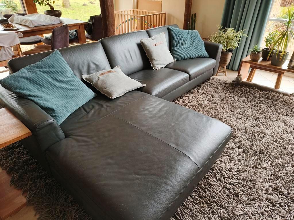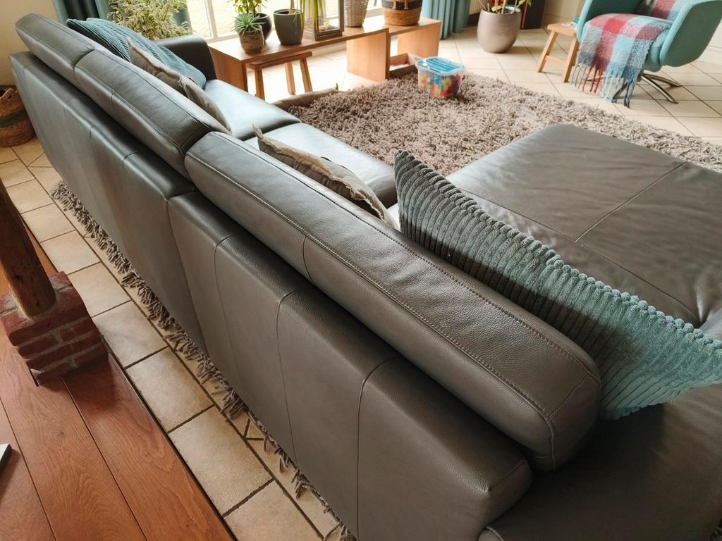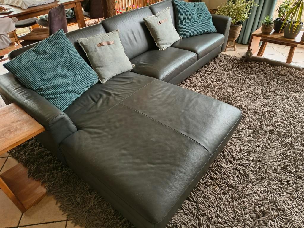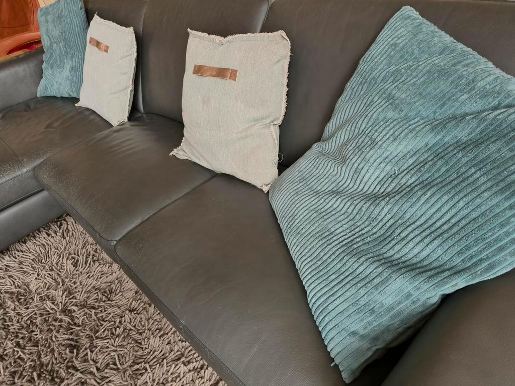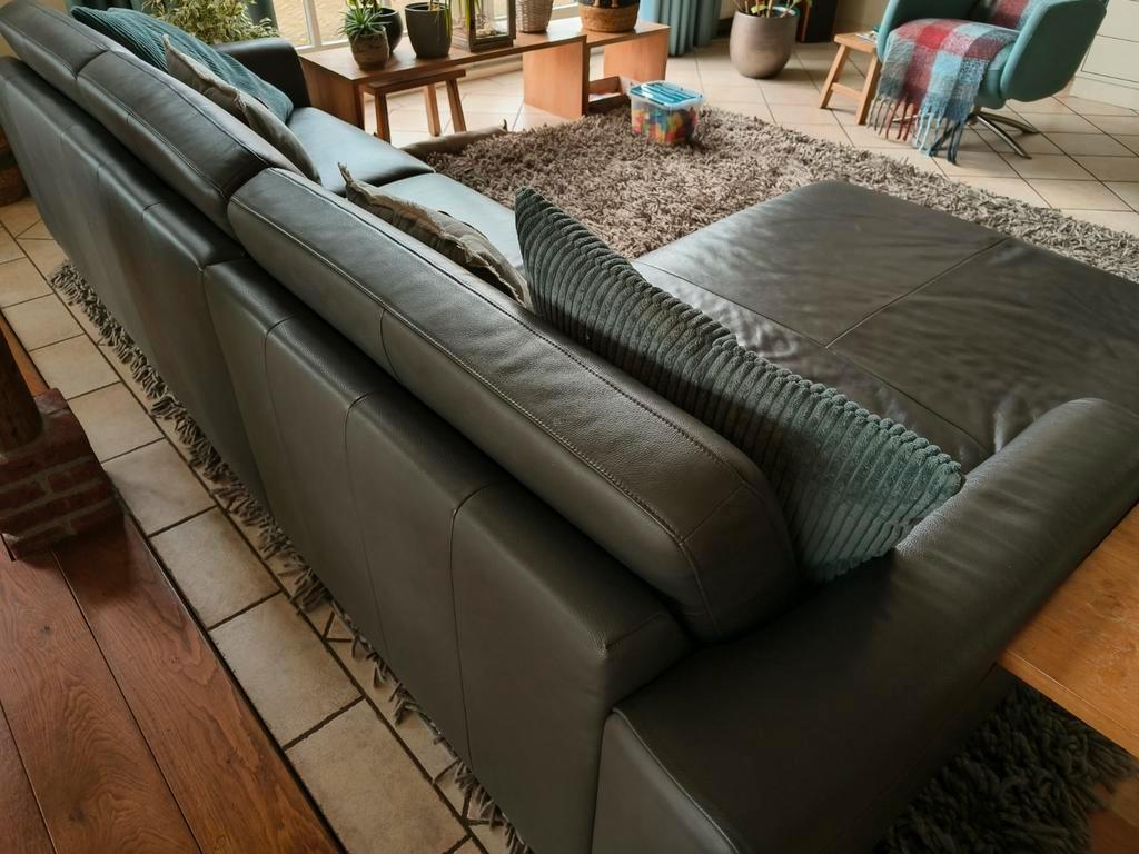 Hierbij bieden wij onze tweedelige leren bank aan. Het is een bank die heerlijk zit, en ligt! Met comfortabele grote loungeplek. De bank mag weg wegens de aanschaf van een nieuwe. Er zijn wel wat plek