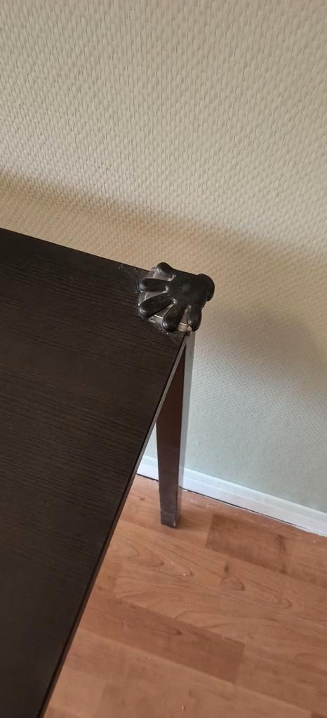 Tafel/bureau. Zwart. Lengte 110cm breedte 67 cm hoogte. 74 Cm zitten hoek beschermers op die eraf kunnen.
