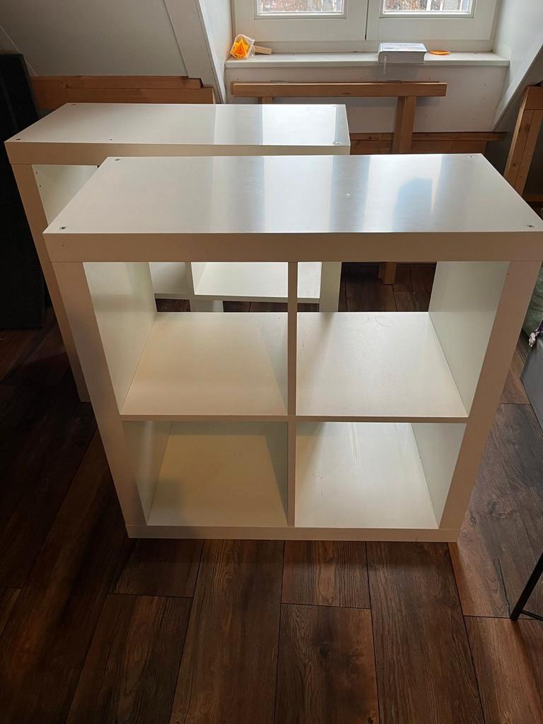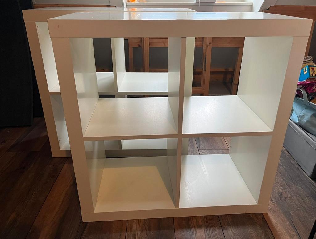 Twee kallax kasten met 2x2 vakken. Ideaal voor opbergen en decoratie. Afmetingen: 77x77x39 cm. Her en der wat gebruikssporen.