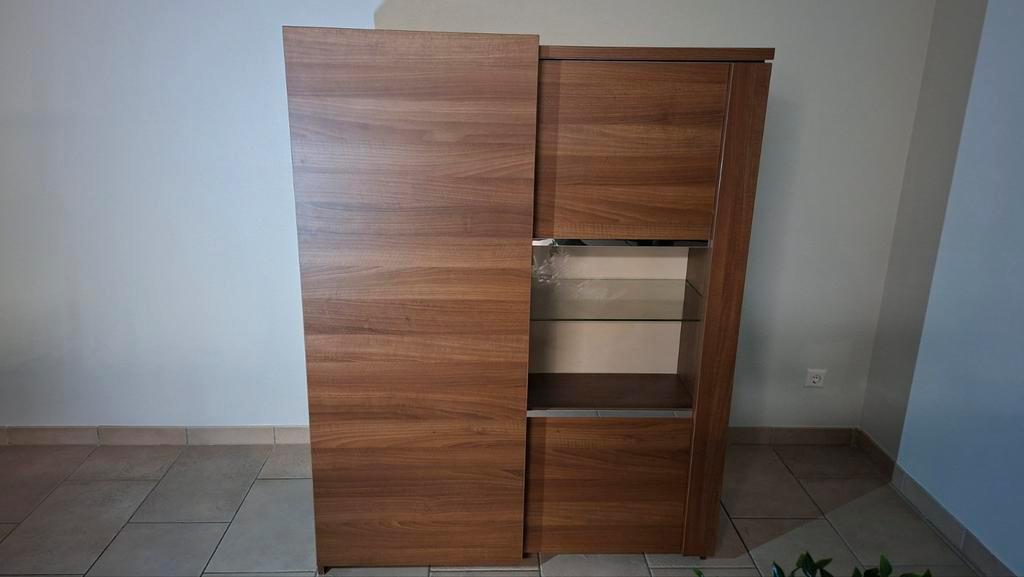 Boekenkast walnoot. Met 2 schuifdeuren. Er zijn totaal 8 plankjes.