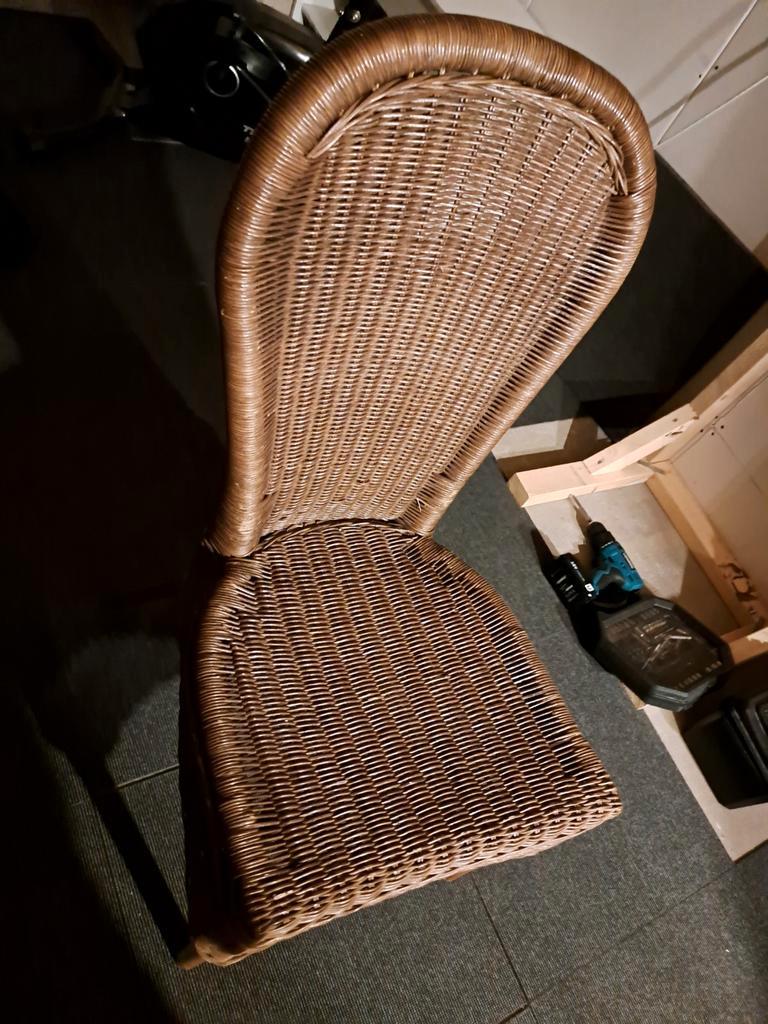 Twee gratis bruine rieten stoelen. Ze zijn gebruikt, maar nog in goede staat. Gratis af te halen!