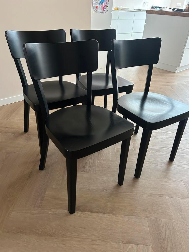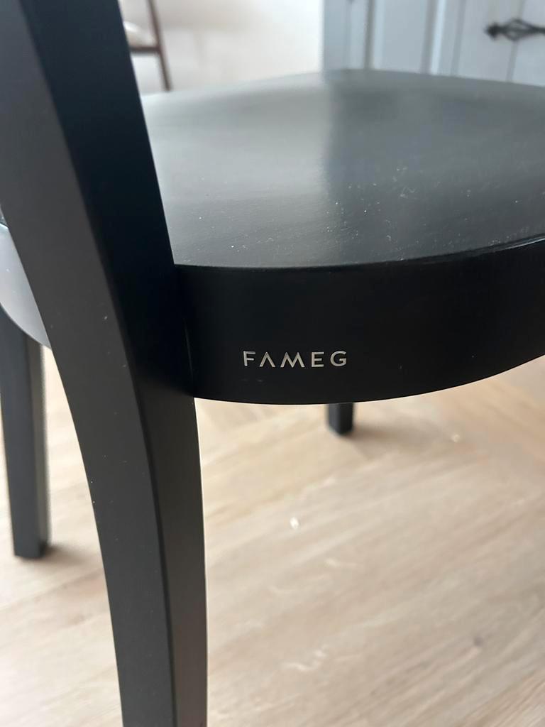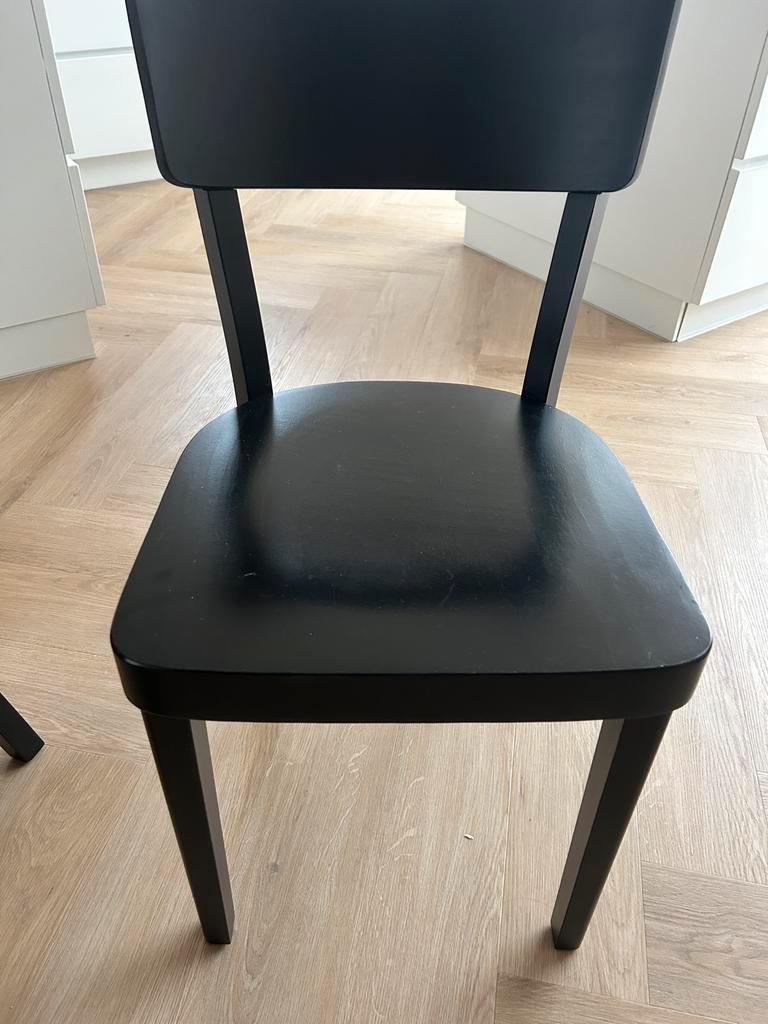 Mooie fergus houten eetkamerstoel, zwart gebeitst. De stoel is in goede staat en past goed in een modern interieur. Stevige constructie en comfortabele zitting. Geschikt voor dagelijks gebruik in de e