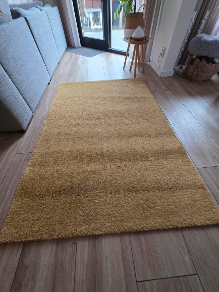 Gratis okergeel vloerkleed beschikbaar om op te halen. Het kleed is gebruikt, maar nog in goede staat. Ideaal voor een warme en gezellige sfeer in huis of op de slaapkamer. Afmetingen zijn 195 cm bij