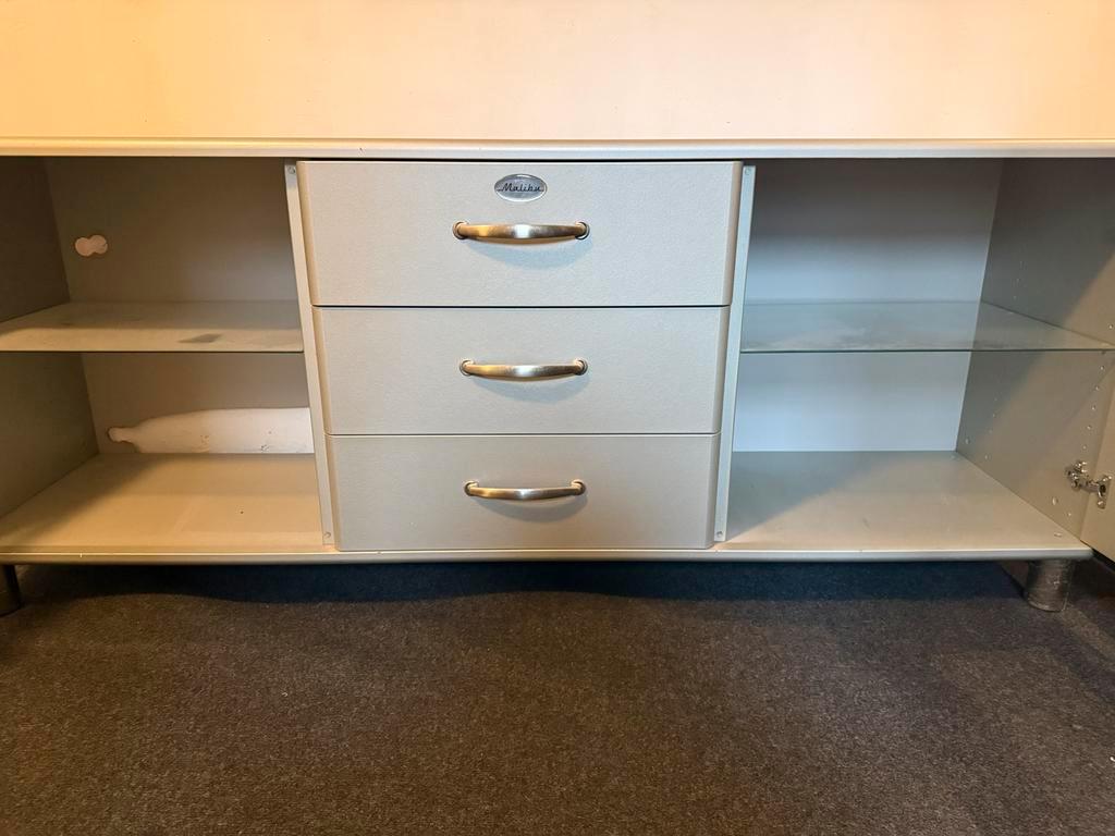 Mooi dressoir met veel opbergruimte. Het dressoir heeft lades en deuren, waardoor er voldoende ruimte is om spullen op te bergen. Ideaal voor in de woonkamer of eetkamer. Het dressoir is in gebruikte