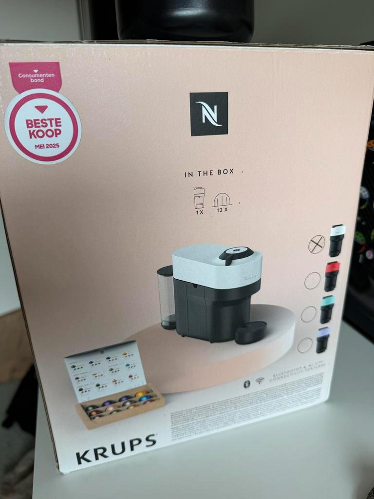 Te koop: nespresso vertuo pop wit, hij is gekocht eind vorige jaar en amper tot niet gebruikt. Gaat nu weg wegens overstap naar bonenmachine, voor een goed bod kan die meteen opgehaald worden krups v