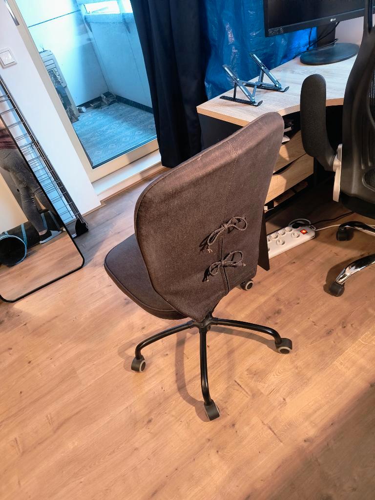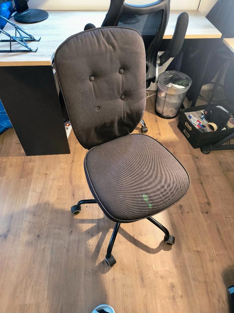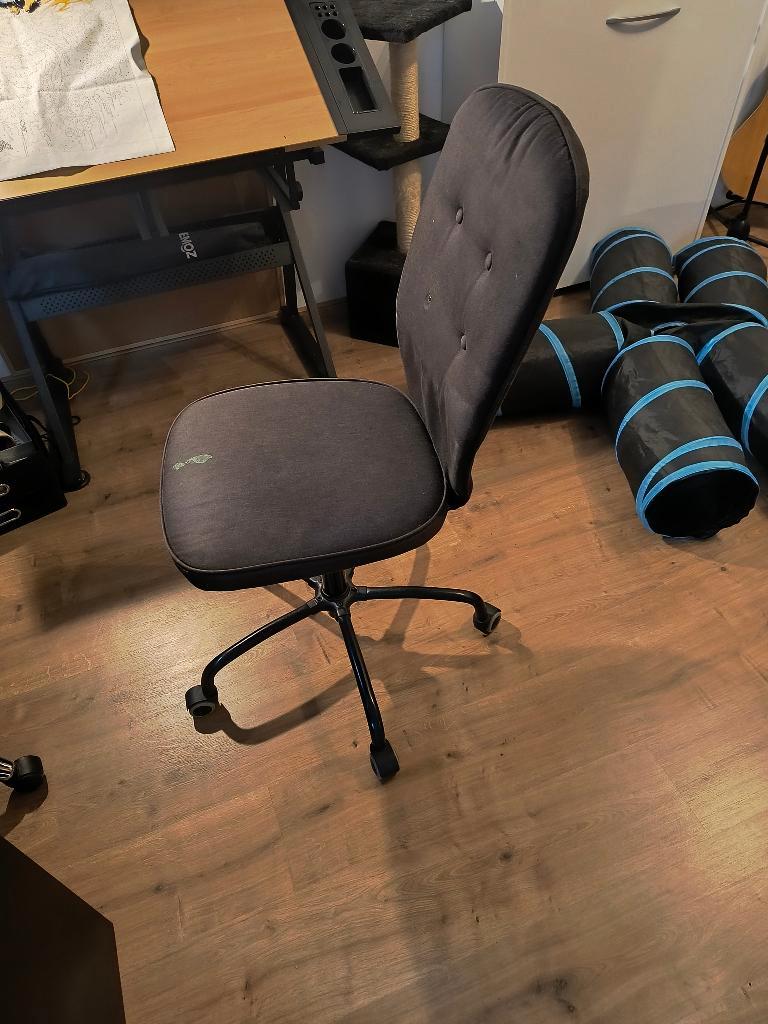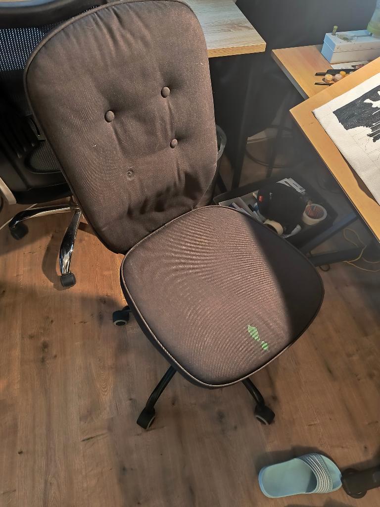 Doet het nog prima, er zit een kleine groene verfvlek op het zitvlak en er mist een decoratief knoopje in de rugleuning
