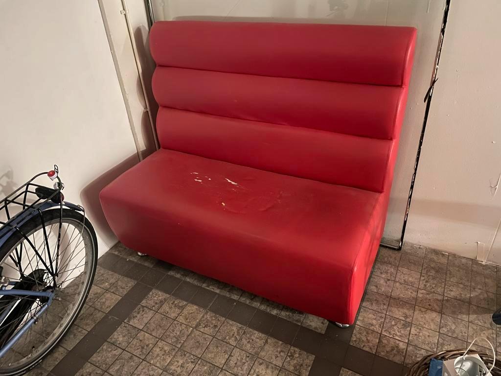 Achtergelaten door één van de buren die verhuisd is. Staat al maanden op de gang. Zitting heeft schade zoals te zien in de foto’s. Hoogte 110cm diepte 75 cm zitvlak 45 cm breedte 22 cm