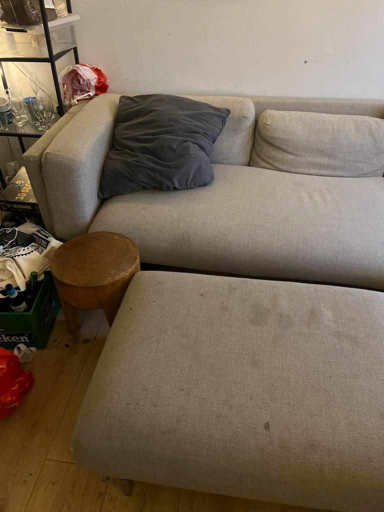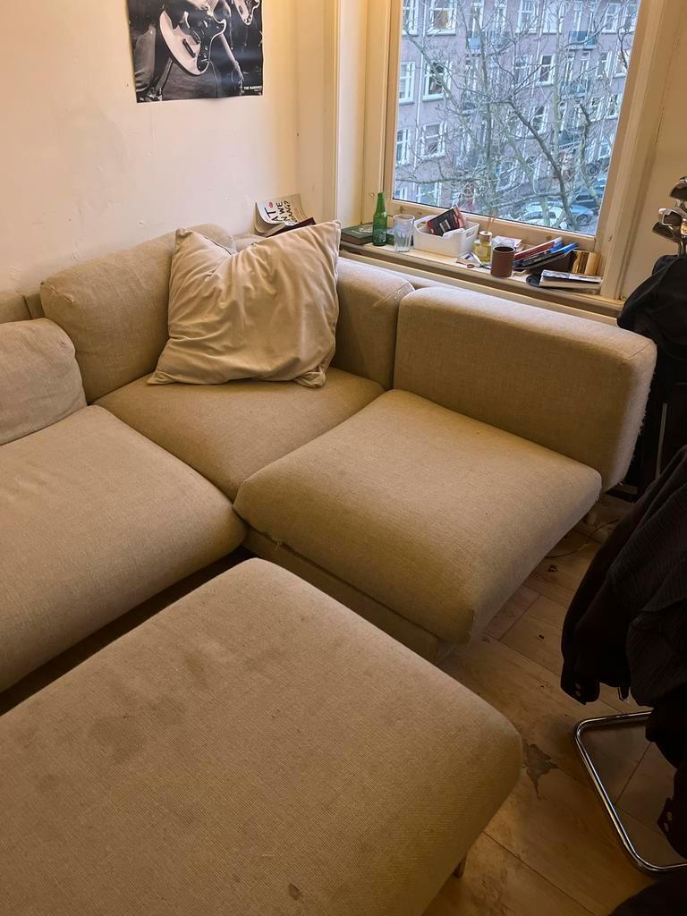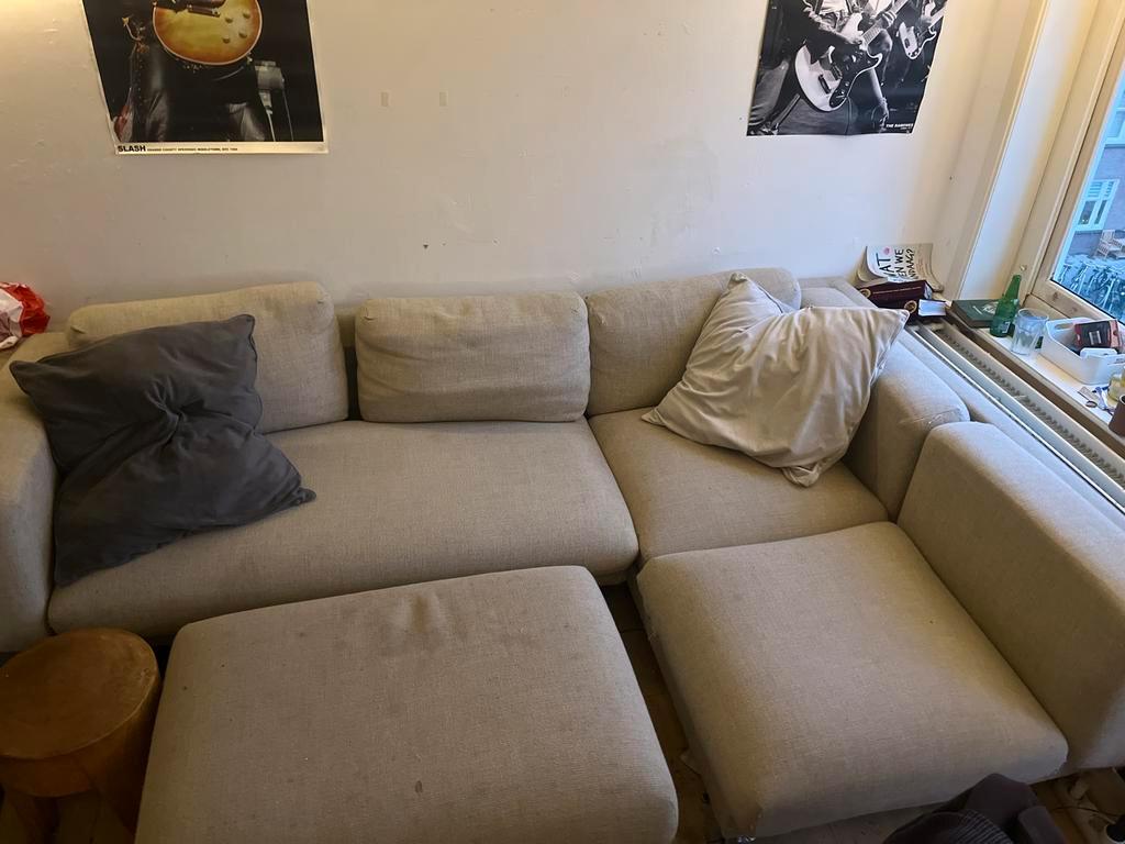 Mooie en comfortabele hoekbank. De bank is in goede staat en biedt veel zitruimte. Ideaal voor een gezin of voor mensen die graag gasten ontvangen. De bank is bekleed met een zachte stof en heeft een