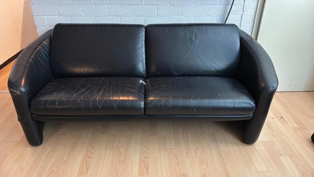 Tweezits. Duidelijke gebruiksporen, met tape een beschadiging afgeplakt. Breedte: 1.9M diepte: 90cm