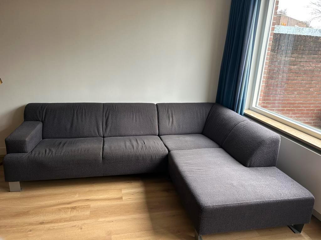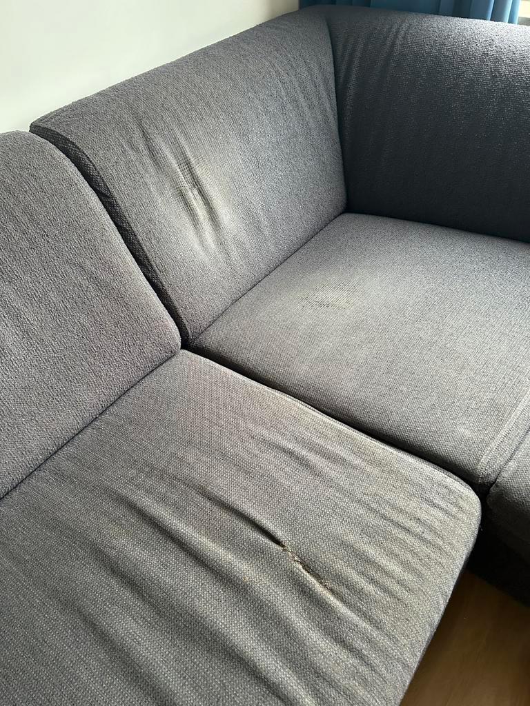 Gebruikte hoekbank. Dunne plekken en een gaatje (dichtgemaakt). Zit nog super! Zelf gebruikt met dekens. Lengte (muur): 270 cm lengte (raam) +- 200 cm diepte (zitvlak +leuning) 98 cm gratis ophalen vo
