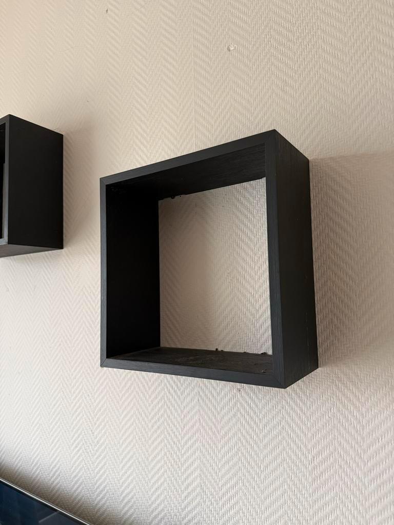 Set van 3 vierkante wandplanken in goede staat. Ideaal voor het decoreren van de woonkamer, slaapkamer of kinderkamer. De planken zijn makkelijk te monteren en geven een moderne uitstraling aan je int