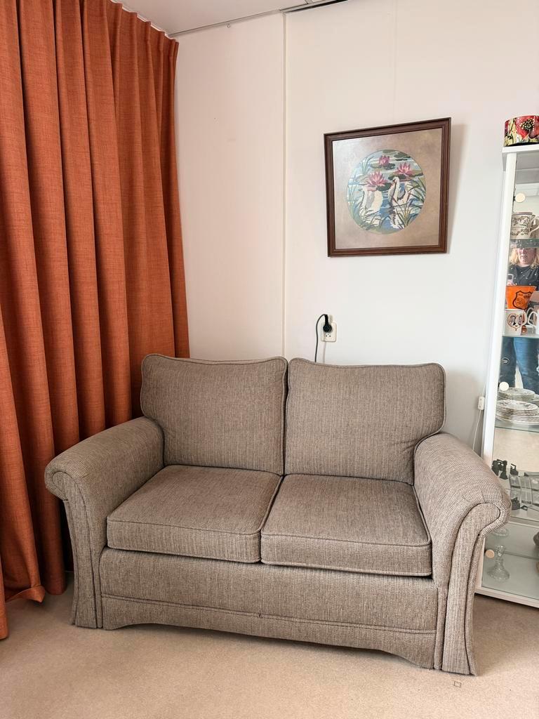 Comfortabele tweezitsbank in goede staat. Ideaal voor een kleine woonkamer of appartement. De bank is bekleed met een zachte stof en heeft een tijdloze uitstraling.