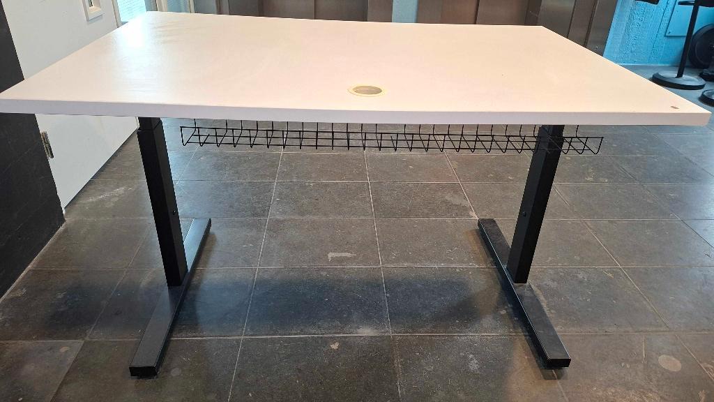 In hoogte verstelbaar bureau kleine beschadiging in de hoek rechtsachter, zie foto afmeting 120x80cm je mag hem op komen halen als je wat lekkers meebrengt voor mij en mijn collega''s! Normaal gesp