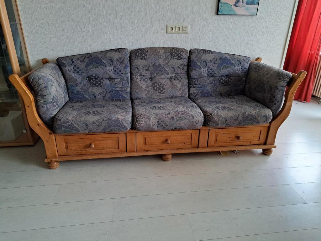 Gratis op te halen! Mooie, degelijke massief houten bank. Geschikt voor 3 personen. De bank is gebruikt, maar in goede staat. Onder de zittingen bevinden zich handige opberglades. 216 Cm breed 73,5 cm