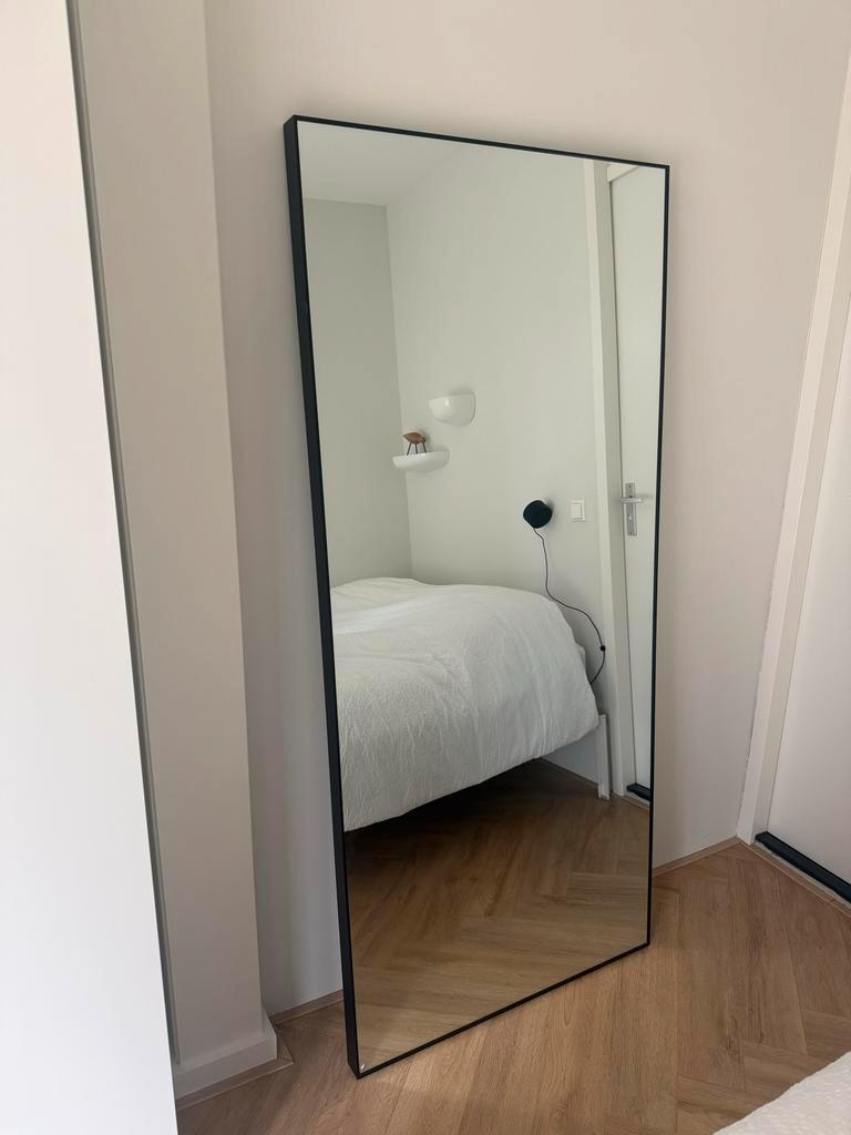 Gratis af te halen: karwei berlin spiegel met afmetingen 80 cm breed, 180 cm hoog en 5 cm diep. De spiegel heeft kleine beschadigingen op de zwarte lijst en een barstje links onderin het spiegelglas.