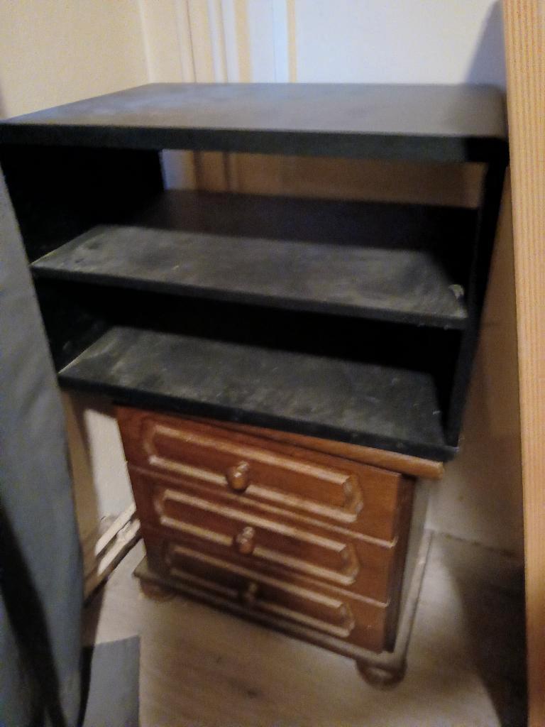 Ivm verthuizing. Leren stoel, tv kastje, eiken boekenkast, 2 kastjes, complete tuin set, keuken/werk tafel met metalen poten, hometrainer, badkamerkastje, laag tafeltje, 2 lampen met ventilator ( zelf