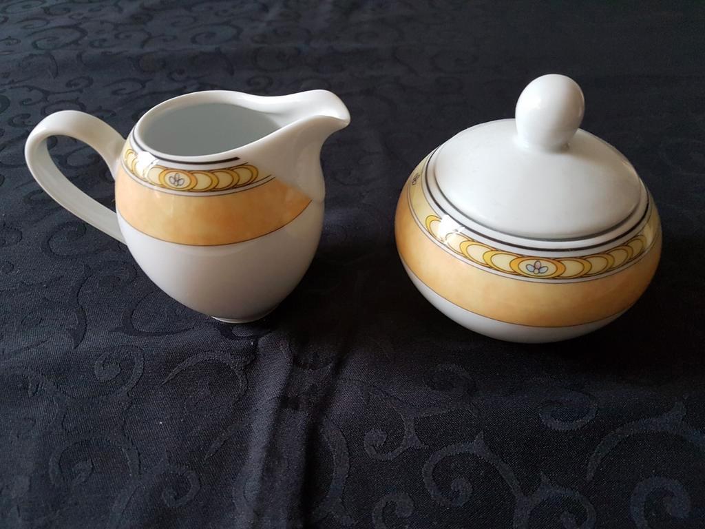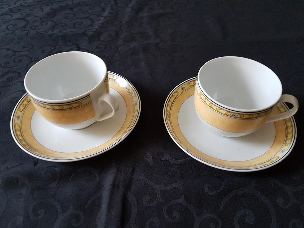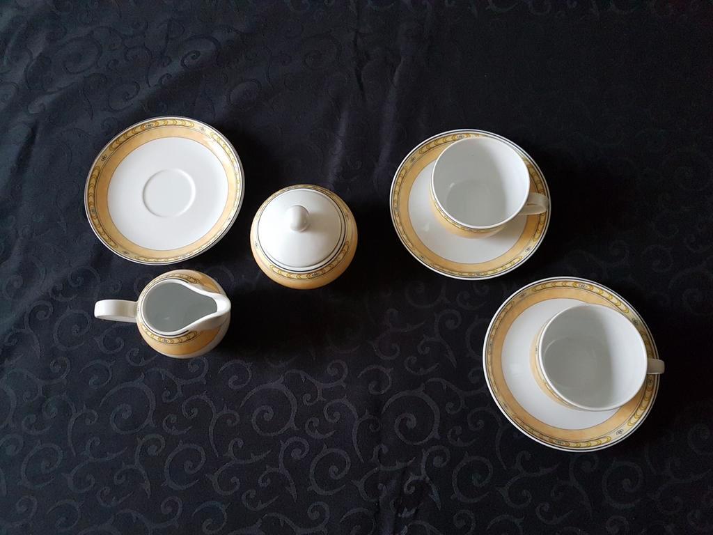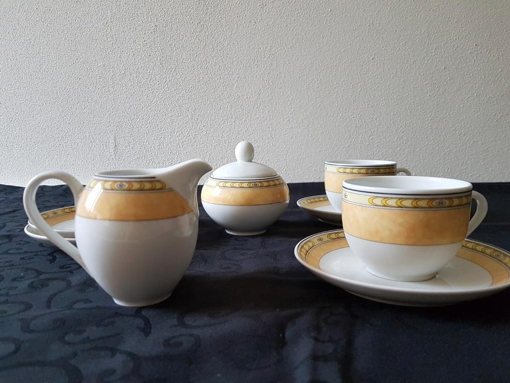 Mooi servies bestaande uit 2 kop en schotel, 1 reserve schotel, een melkkan en een suikerpot. Het servies is in goede staat en heeft een elegant design. Perfect voor een gezellige theetijd of koffie m
