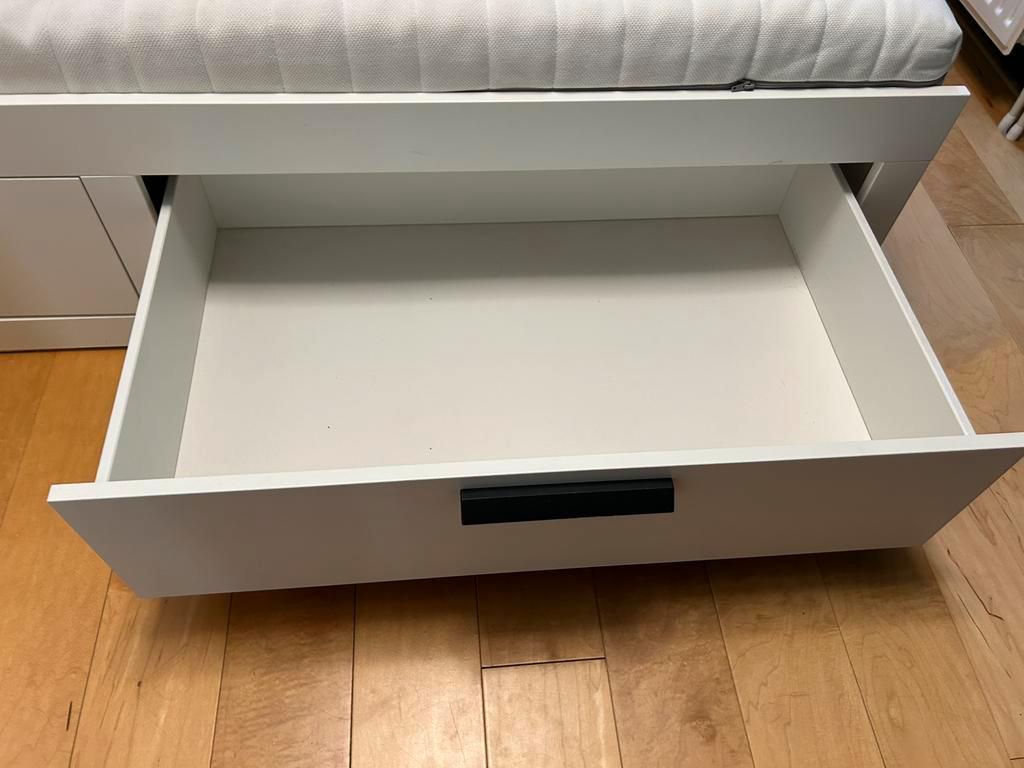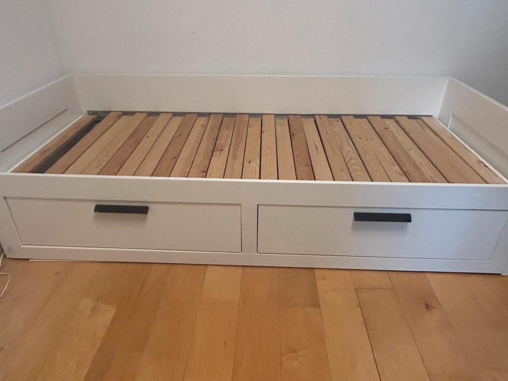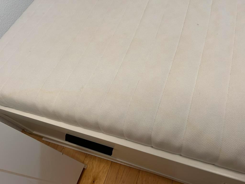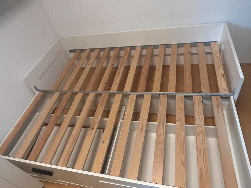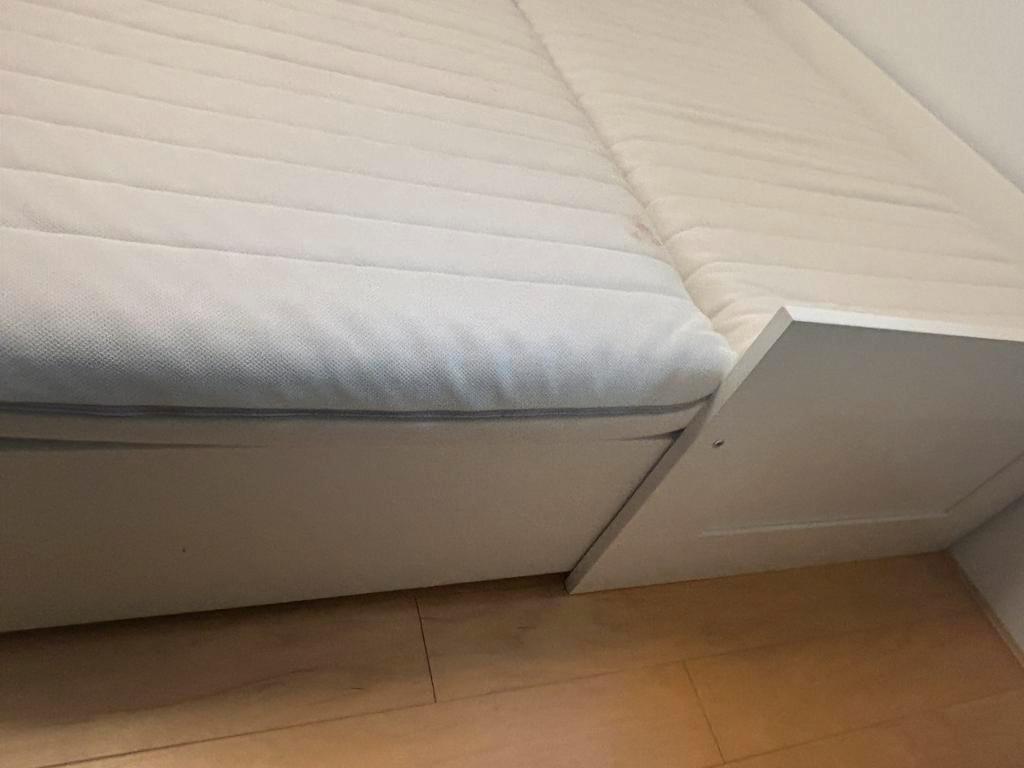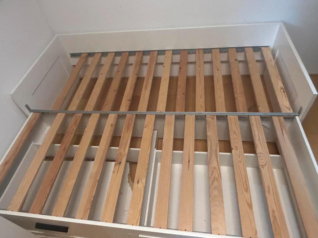Kinderbed uitschuifbaar ikea. Het bed is tweede hands maar zou nog een ronde mee kunnen. De linker lade bodem is stuk. De rechter lade is heel en bruikbaar. De matrassen hebben een afritsbare hoes zod