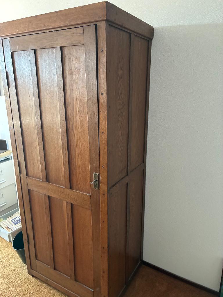 Kledingkast eikenhout te gebruiken al hang- of legkast 82x60x192 bxdxh nb kan niet gedemonteerd worden, dus hou daar rekening mee met transport!