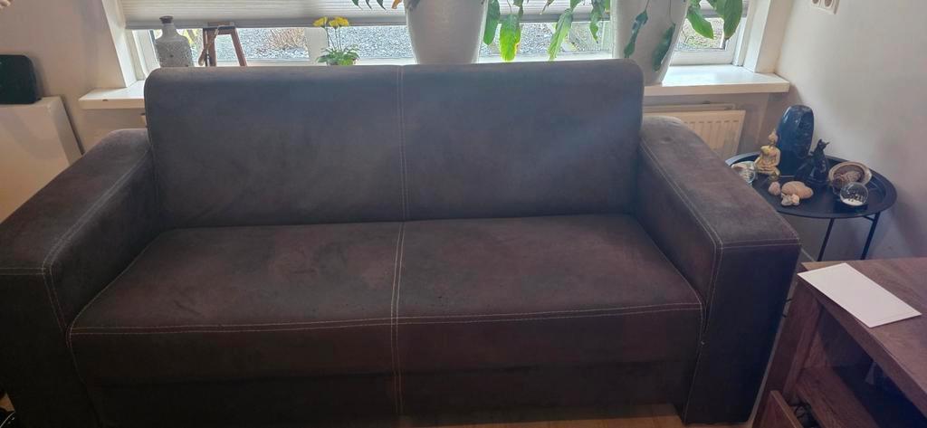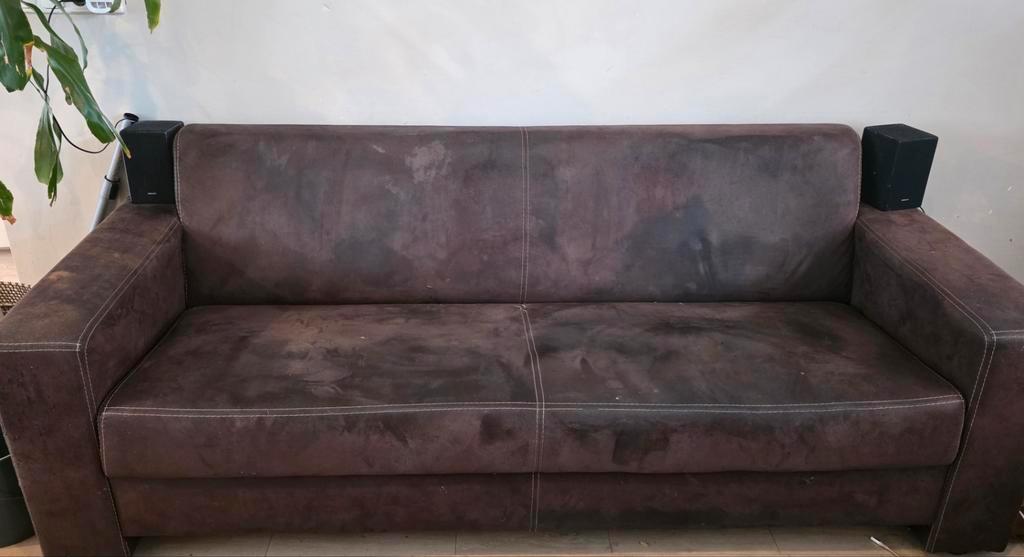 Gebruikte bank 2 en 3 persoons suède bank. (Niet doorgezakt, wel beschadigd) 2 persoons 185 breed 3 persoons 215 breed
