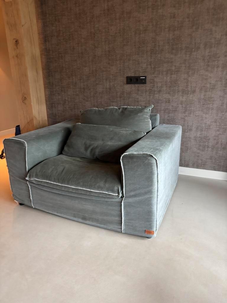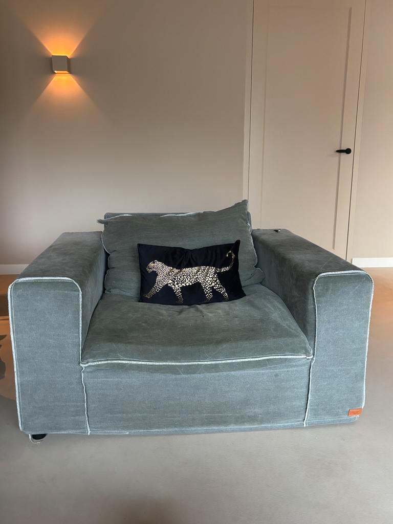 Mooie, comfortabele love chair. Perfect voor een knusse zithoek. Gebruikt maar kan nog heel prima een ronde mee. Alle hoezen kunnen eraf en in de was. Niet alleen de kussens maar ook van de stoel zelf