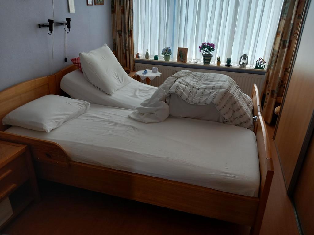 Gratis af te halen: een dubbel seniorenbed die je aan elkaar kan koppellen, inclusief nachtkastjes en een elektrisch verstelbare lattenbodem. De lattenbodem kun je ook instellen in hoogte (niet electr
