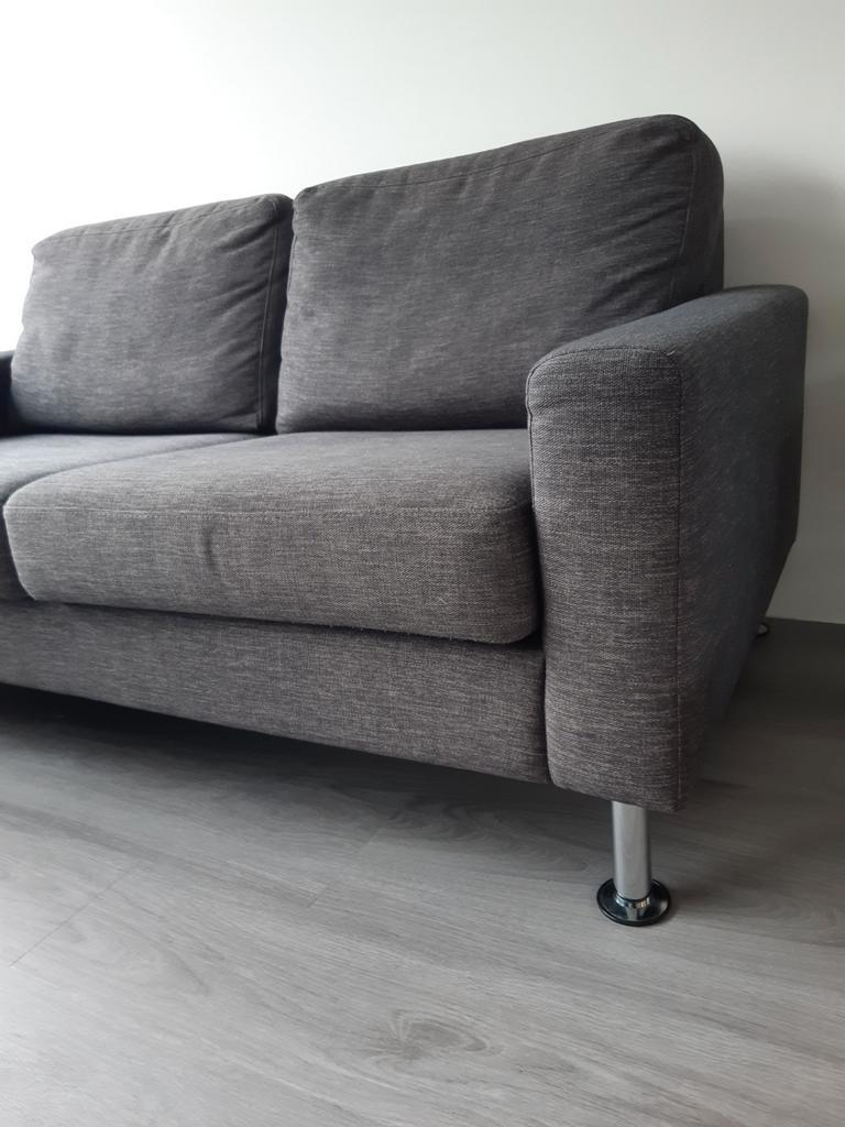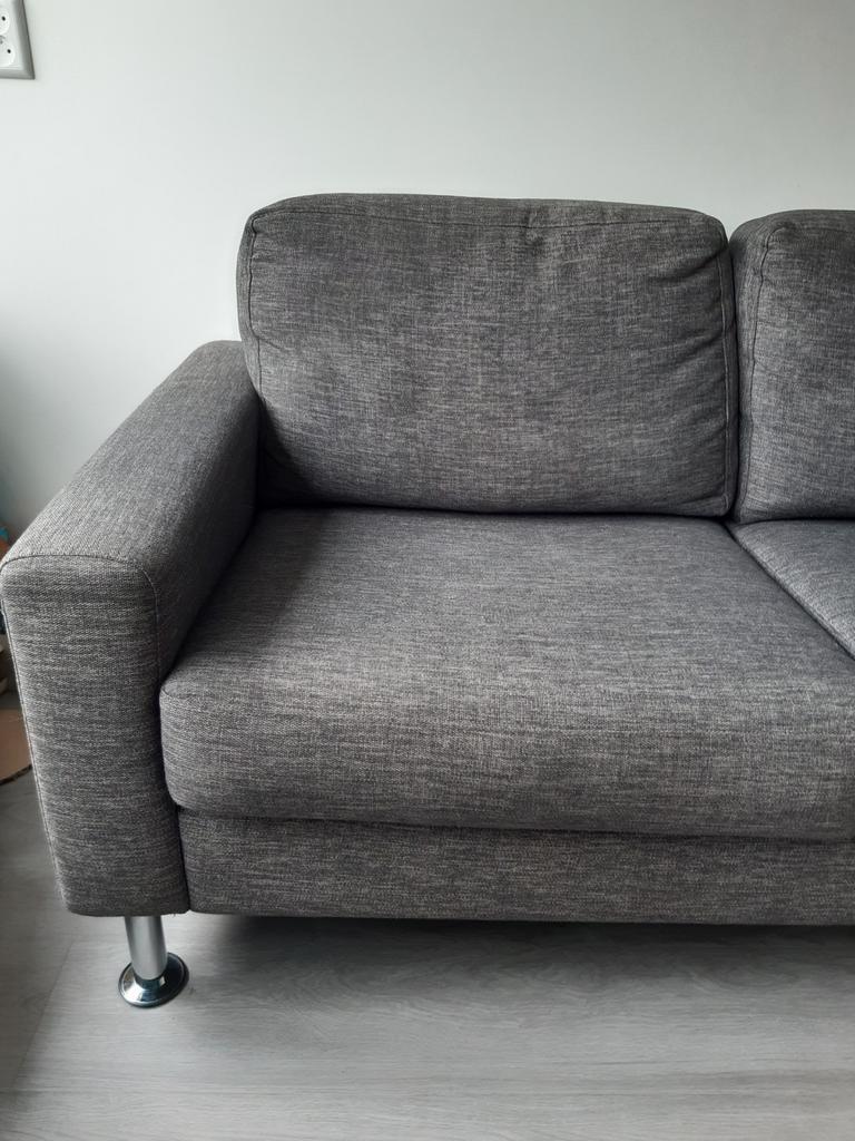 Wij gaan afscheid nemen van onze grijze bank (2.5 Zits) omdat hij niet meer goed bij ons nieuwe huis past. Hij is in goede staat. De kussens zitten los en kunnen daarom ook omgekeerd neergelegd worden