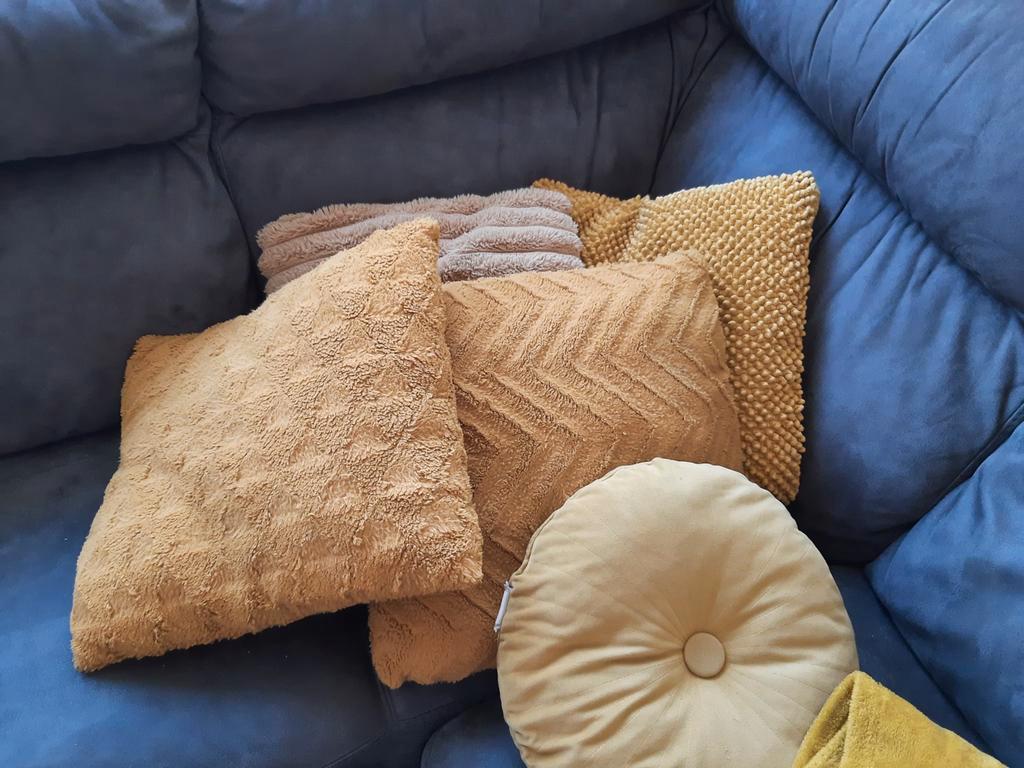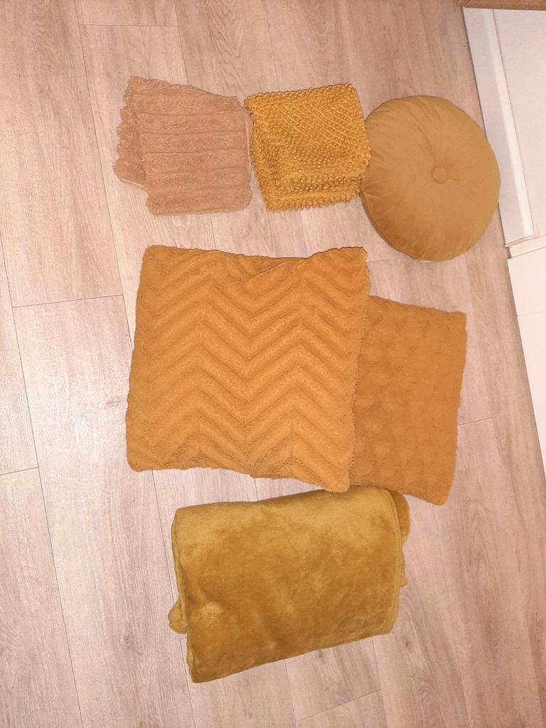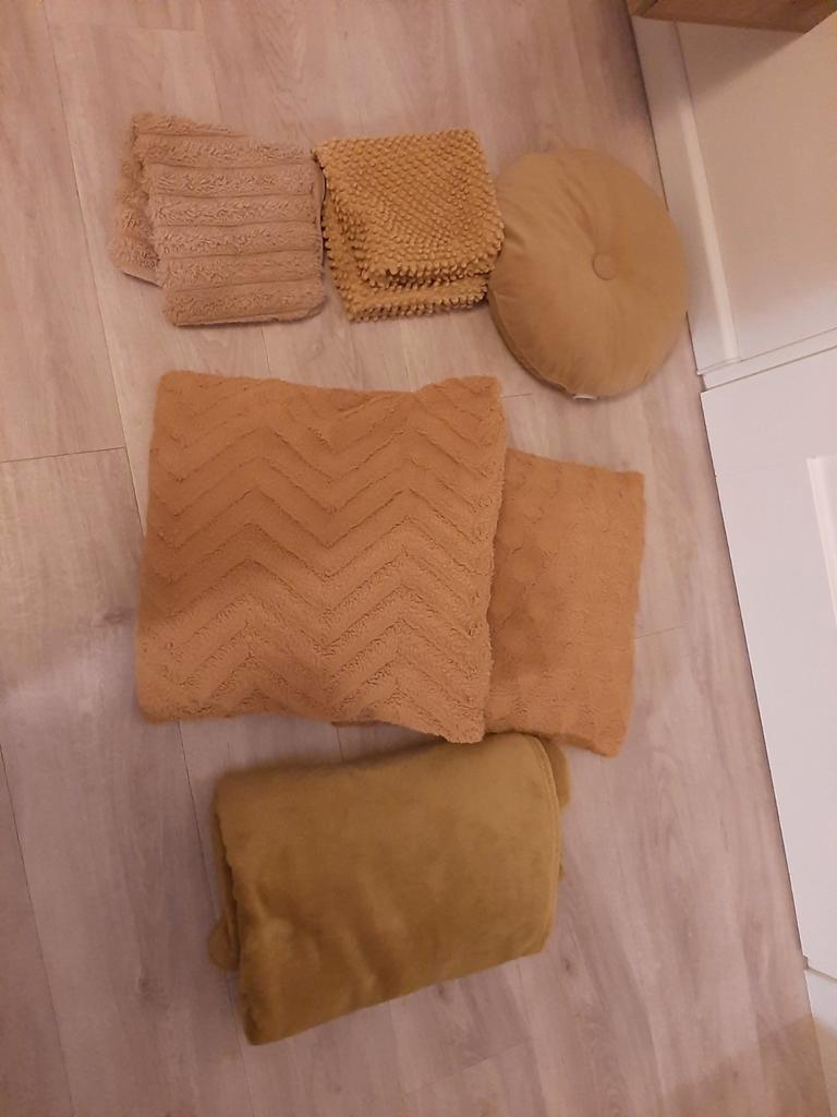 4 kussens. 2 Kussens de vulling kun je niet los wassen. Wel kan je nieuw kussen erin doen. Alle 4 ritssluiting. 5E ronde kussen. En nog een fleecedeken. We gaan over op een nieuwe kleur. Alleen ophal